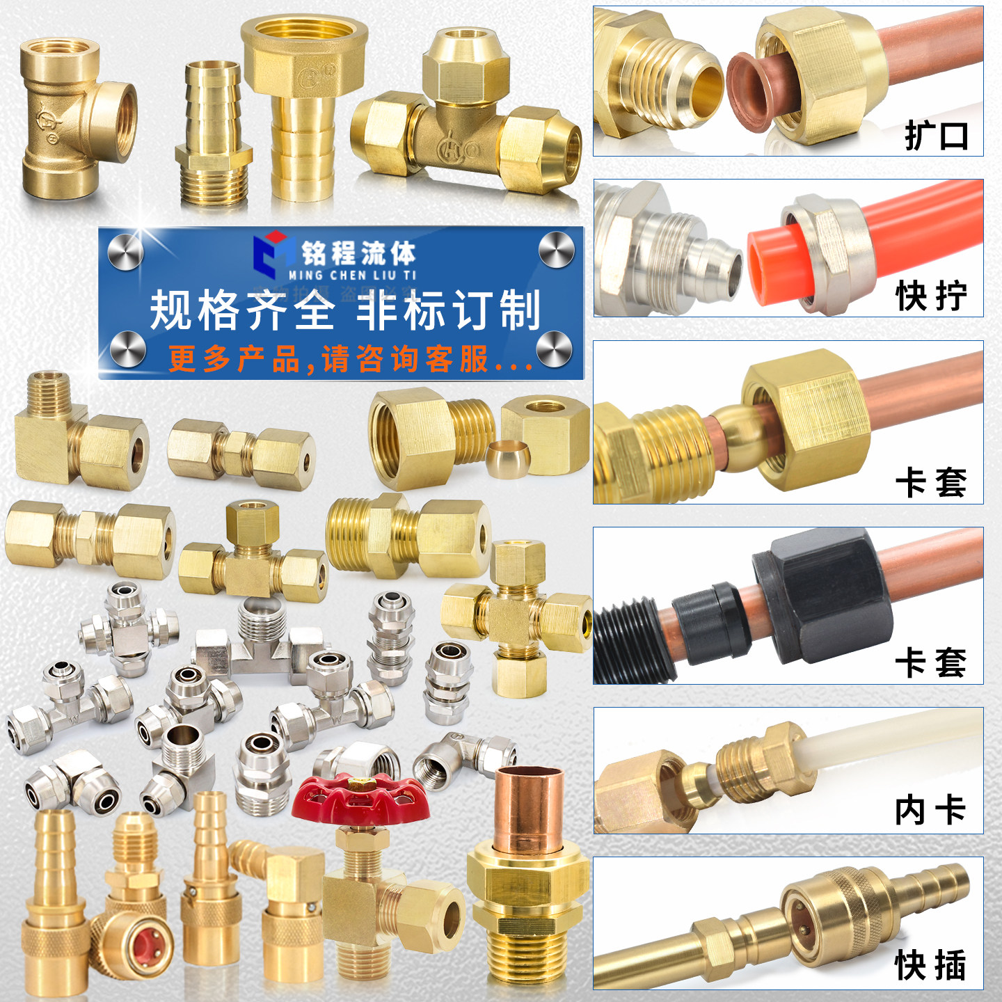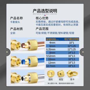 4分卡6.35 9.52加湿器纺织机配件 特厚铜管卡套接头1