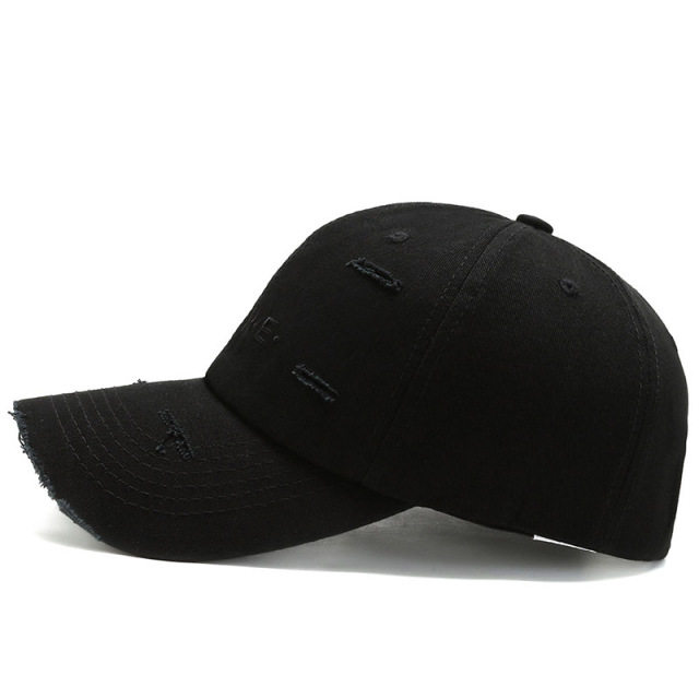 帽 字母刺绣男女鸭舌帽做旧ins时尚 韩版 水洗帽破洞网红棒球帽个性