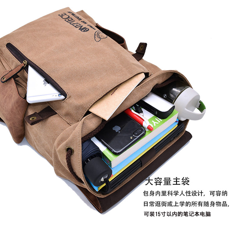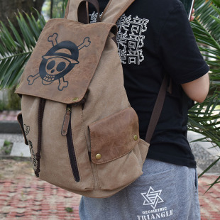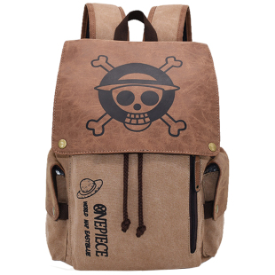 海贼王书包男学生帆布双肩初中高中拼接休闲动漫路飞骷髅头背包