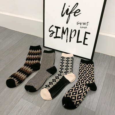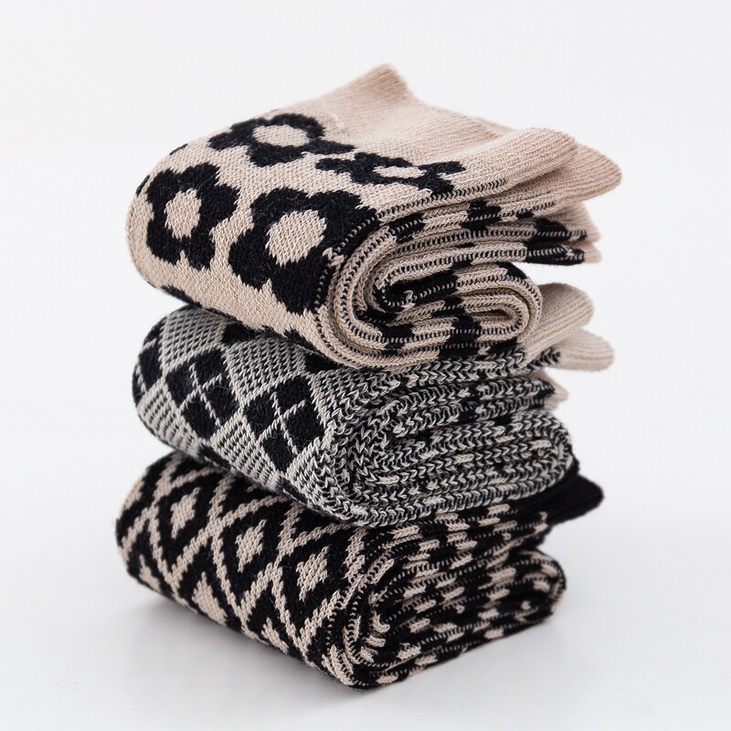 复古针织袜子女中筒袜春秋款 堆堆袜女士长袜潮 棉袜学院风百搭韩版