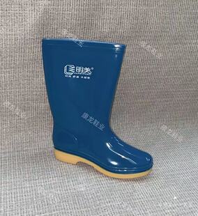 牛筋底防护工作雨鞋 三明美女款 蓝色劳保中筒耐油碱酸防水滑胶鞋