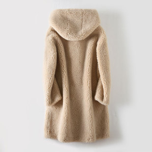 皮毛一体皮草外套 颗粒羊剪绒大衣女连帽羊羔毛中长款 2025冬季 新款