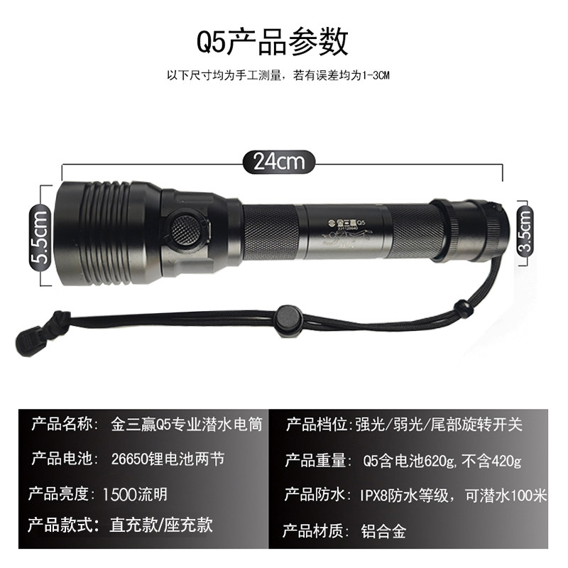 手电筒强光充电式 小型便携户外远射超亮白激光多功能家用耐用巡逻