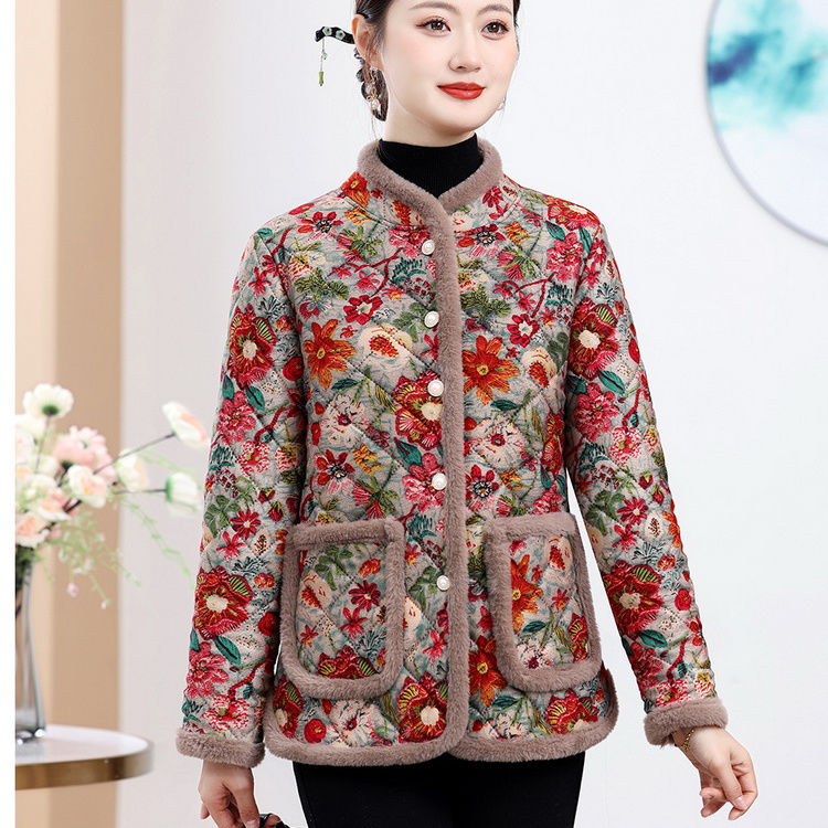 国风上衣休闲加绒棒球服 长袖 2025新款 妈妈秋冬外套洋气中老年女装