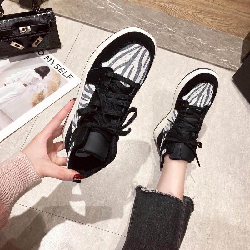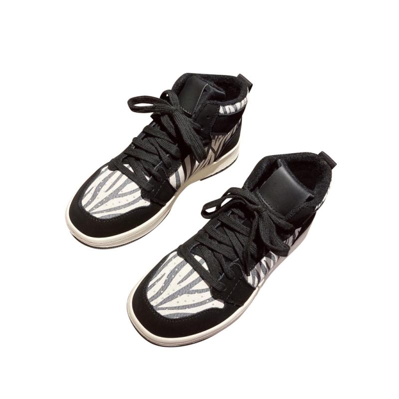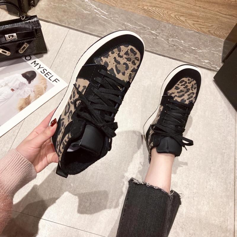 百搭加绒运动板鞋 真皮休闲鞋 豹纹高帮鞋 韩版 潮 女平底2025秋冬新款
