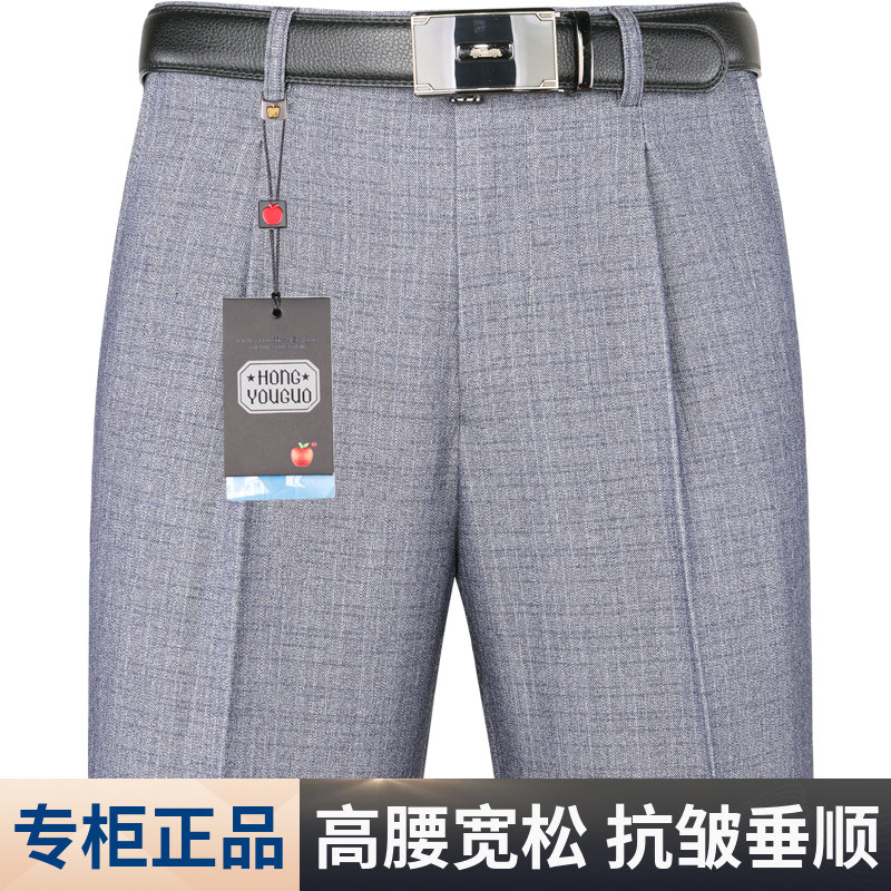 中老年男裤 秋冬厚款 宽松直筒休闲西装 裤 苹果男士 长裤 高腰免烫西裤