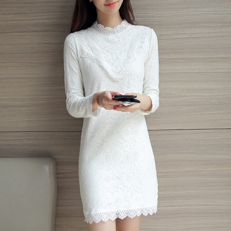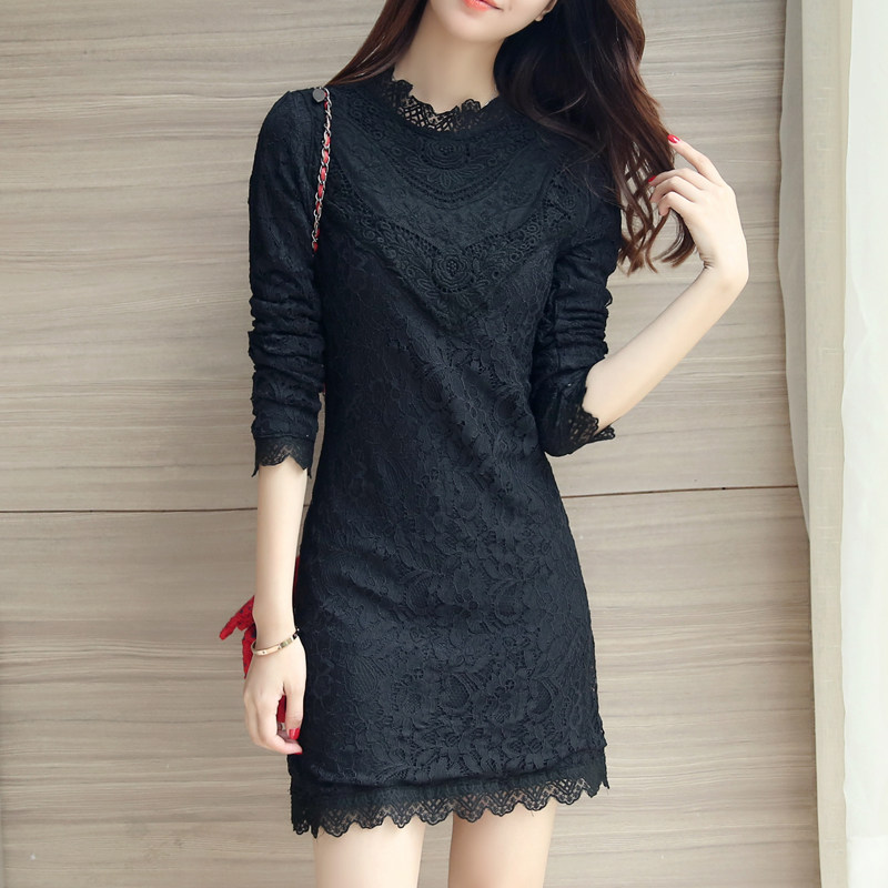 大码 打底衫 中长款 t恤蕾丝衫 长袖 加绒加厚保暖蕾丝连衣裙秋冬新款
