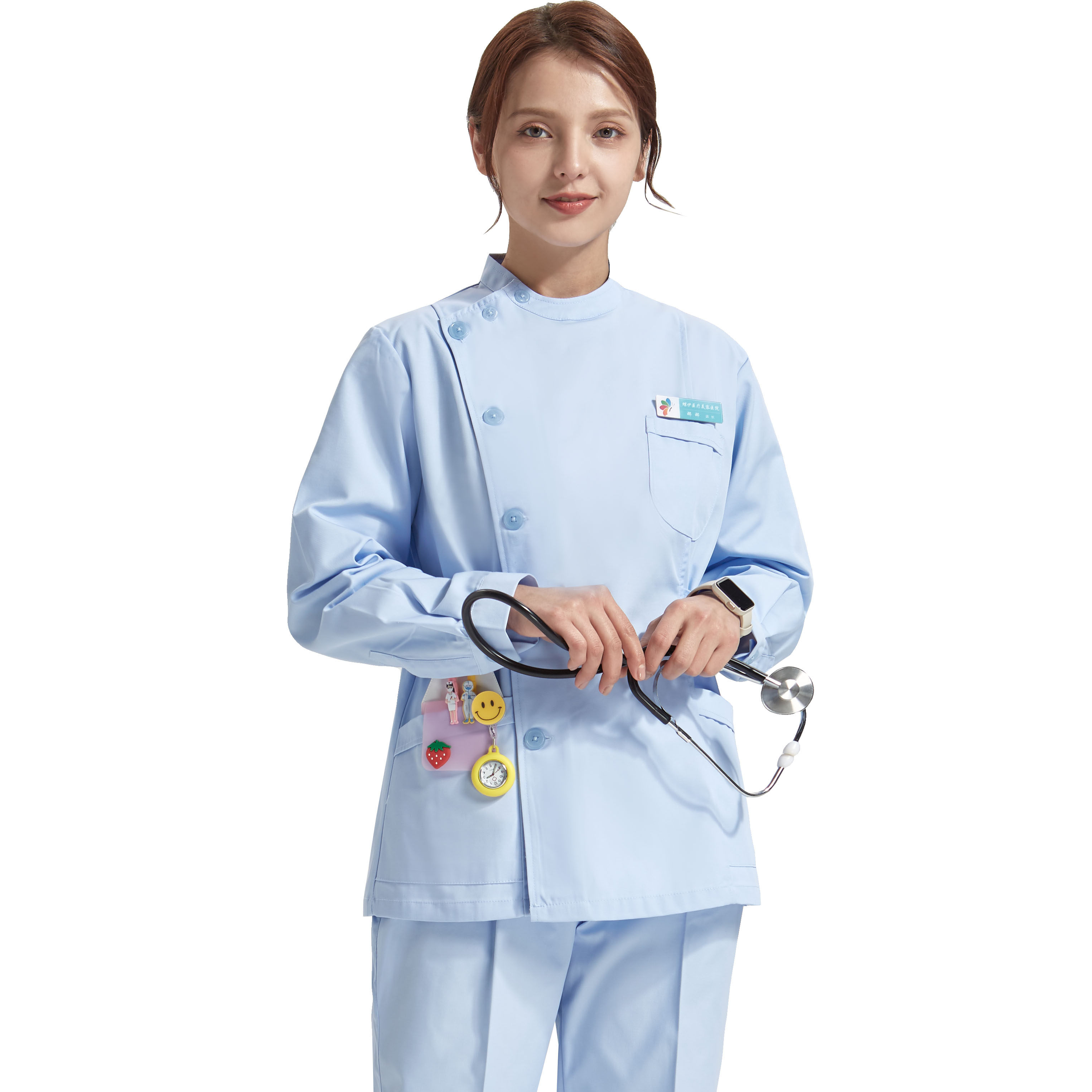 口腔牙科医生工作服 女偏襟立领短袖 南欧鱼护士服医护分体套装 长袖