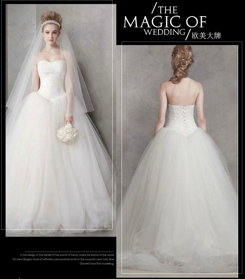 长拖尾修身 大码 婚纱礼服新娘齐地简约 蕾丝婚纱性感抹胸韩式 新款