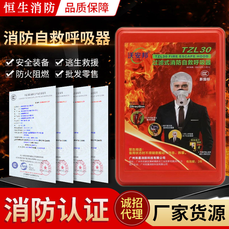 酒店宾馆出租房消防防毒面具防烟防火面罩火灾逃生自救呼吸器套装