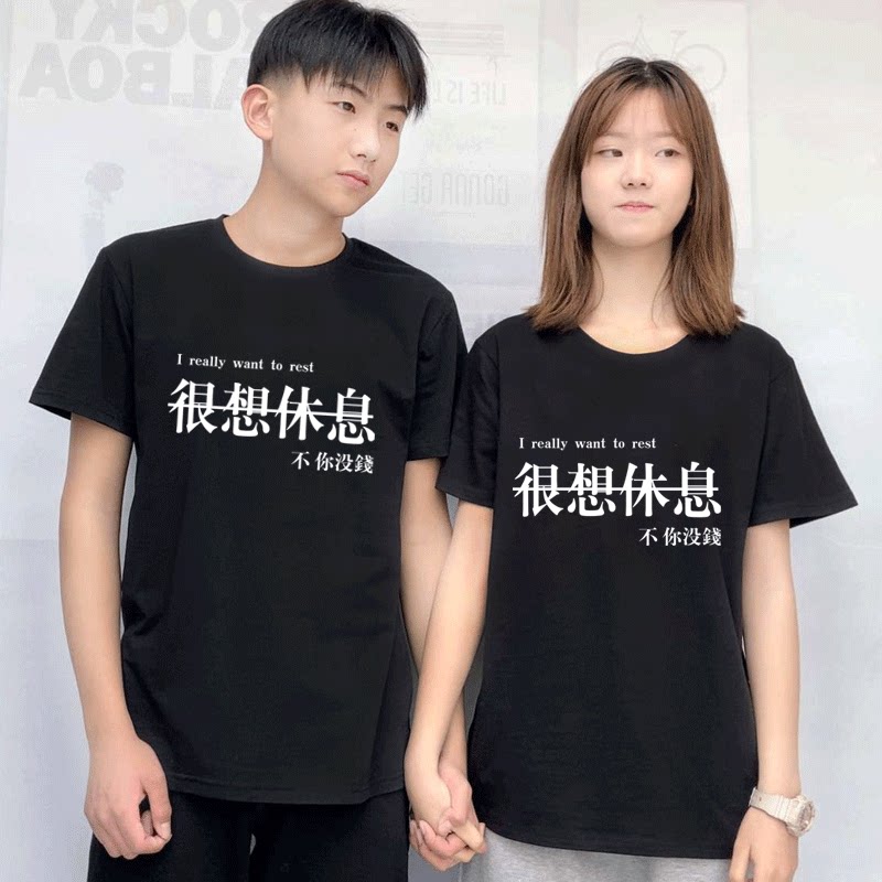 大码 很想休息男短袖 中国风文字创意宽松纯棉T恤定制 新款 2020夏季