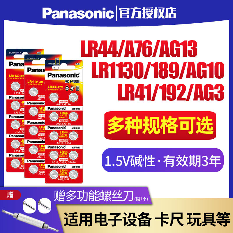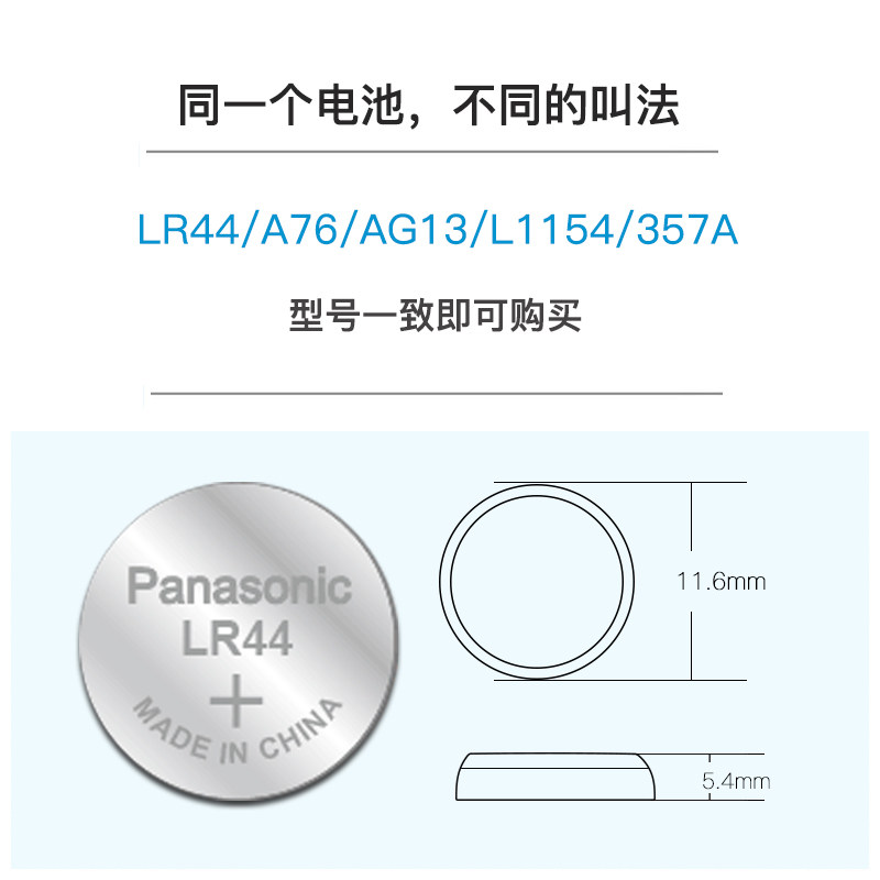 SR44钮扣小电子手表玩具遥控器游标卡尺扣式 松下LR44纽扣电池AG13 357a A76 通用圆形1.5V碱性电池 L1154