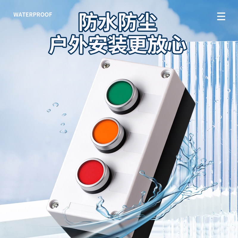 按钮盒开关盒防水控制盒子二三四五单孔工业急停指示灯一位按键盒