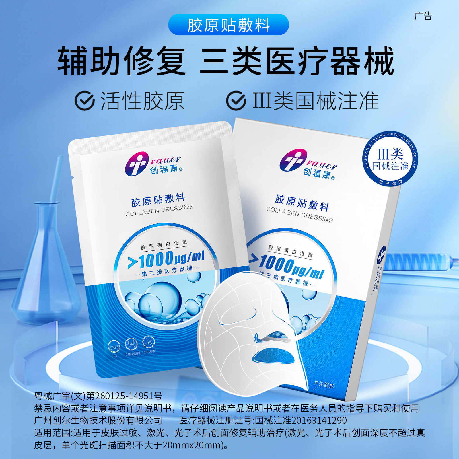 创福康医用屏障修复胶原蛋白无菌敷料舒缓冷敷疤痕贴械字号非面膜