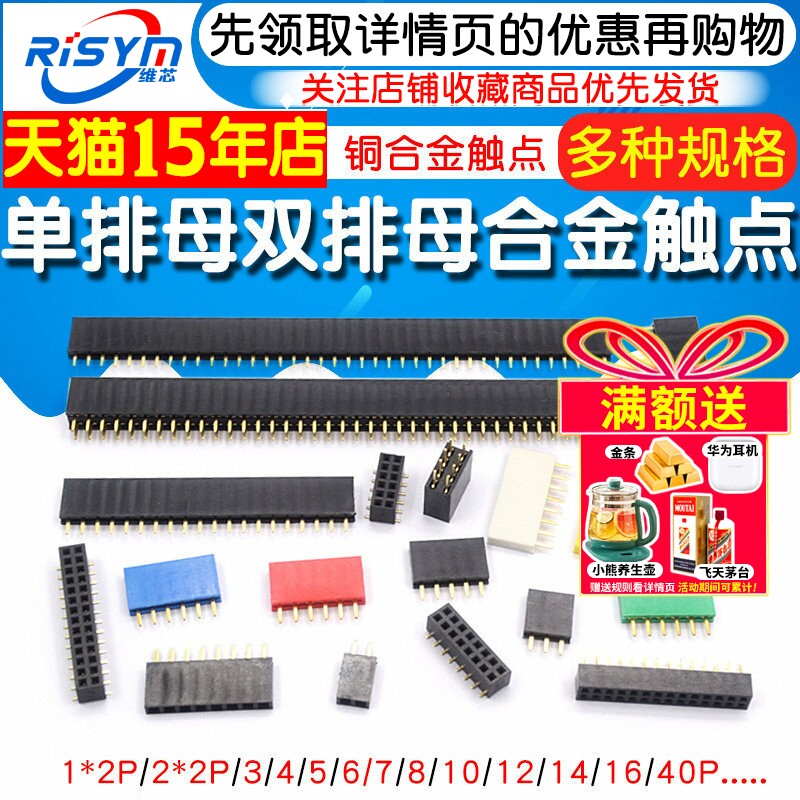 40P 双排母2.54mm单排母排针母座排座针插座插针2.0