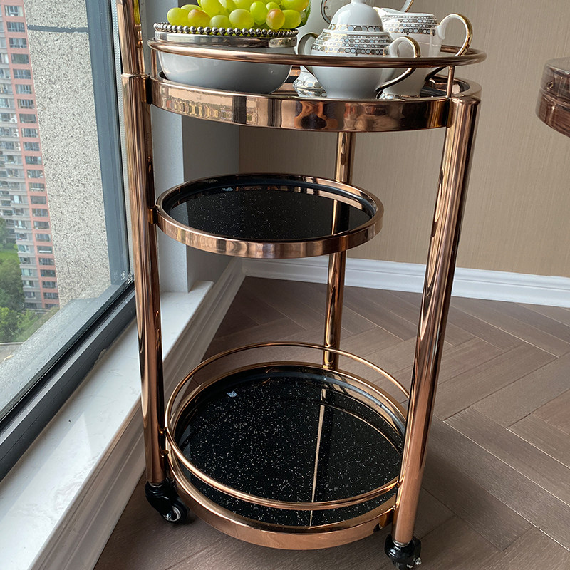左舟移动酒水推车不锈钢高档家用酒店餐厅三层茶水酒水餐车小推车