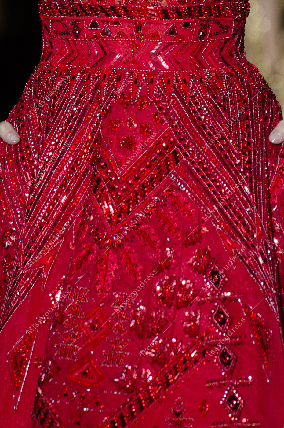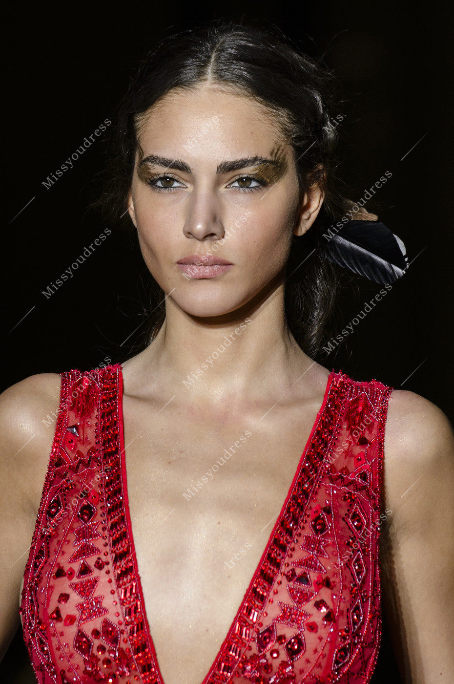 高端新款 红色深V奢华重工晚礼服新娘敬酒服年会主持红毯走秀礼服