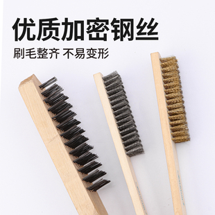 钢丝刷带柄铁刷子木柄不锈钢加密打磨除锈抛光清洁铜丝长柄工业用