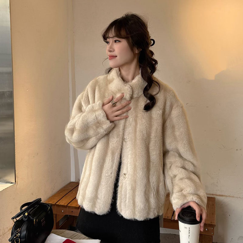 仿貂毛外套显瘦保暖时尚 高级感立领长袖 新款 2025冬季 大衣 皮草女装