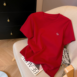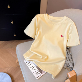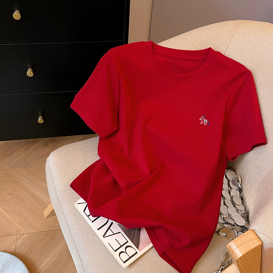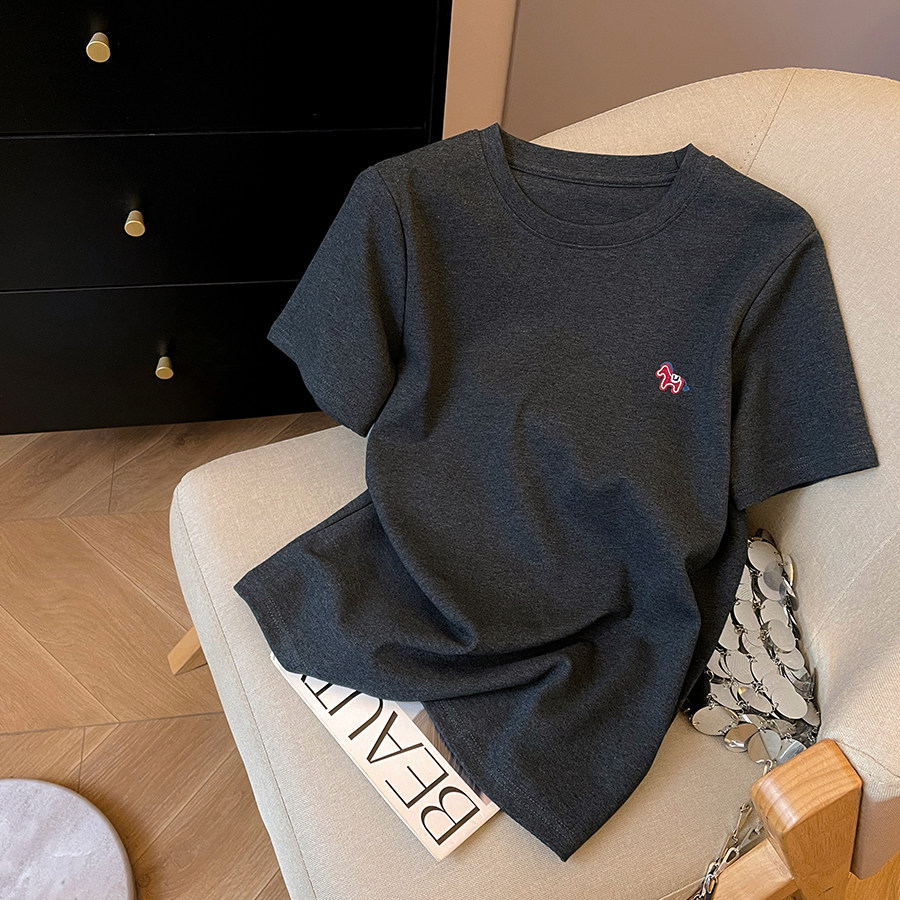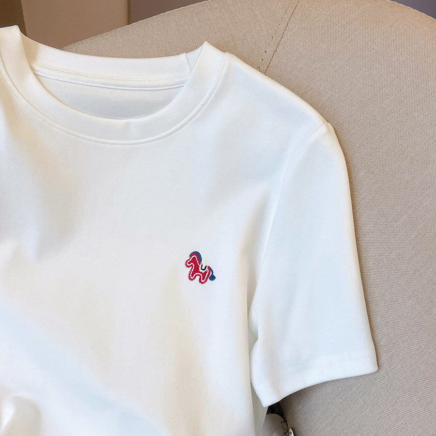 春季 T恤女2026新款 休闲百搭套头圆领正肩上衣 小马刺绣短袖 小C家