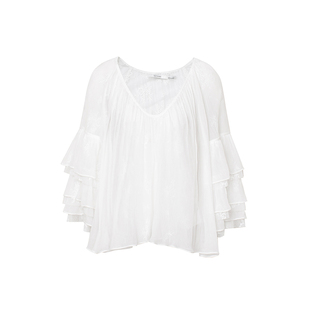 v领蕾丝拼接仙气感微透蛋糕袖 TOP家 浪漫复古 法式 上衣 轻盈飘逸