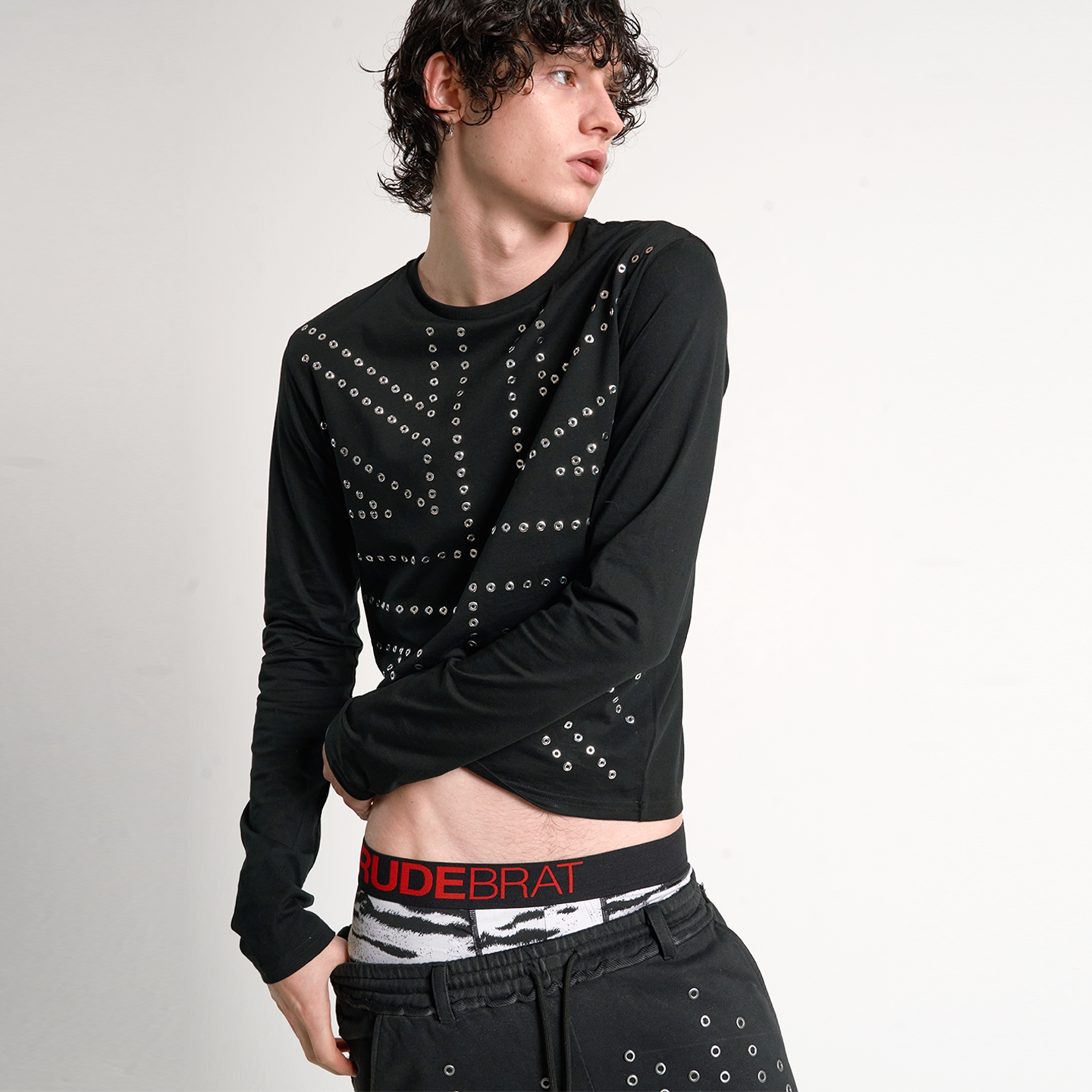 长袖 铆钉全篇幅亮银烫钻合身黑色复古街头春季 noE noEmosen