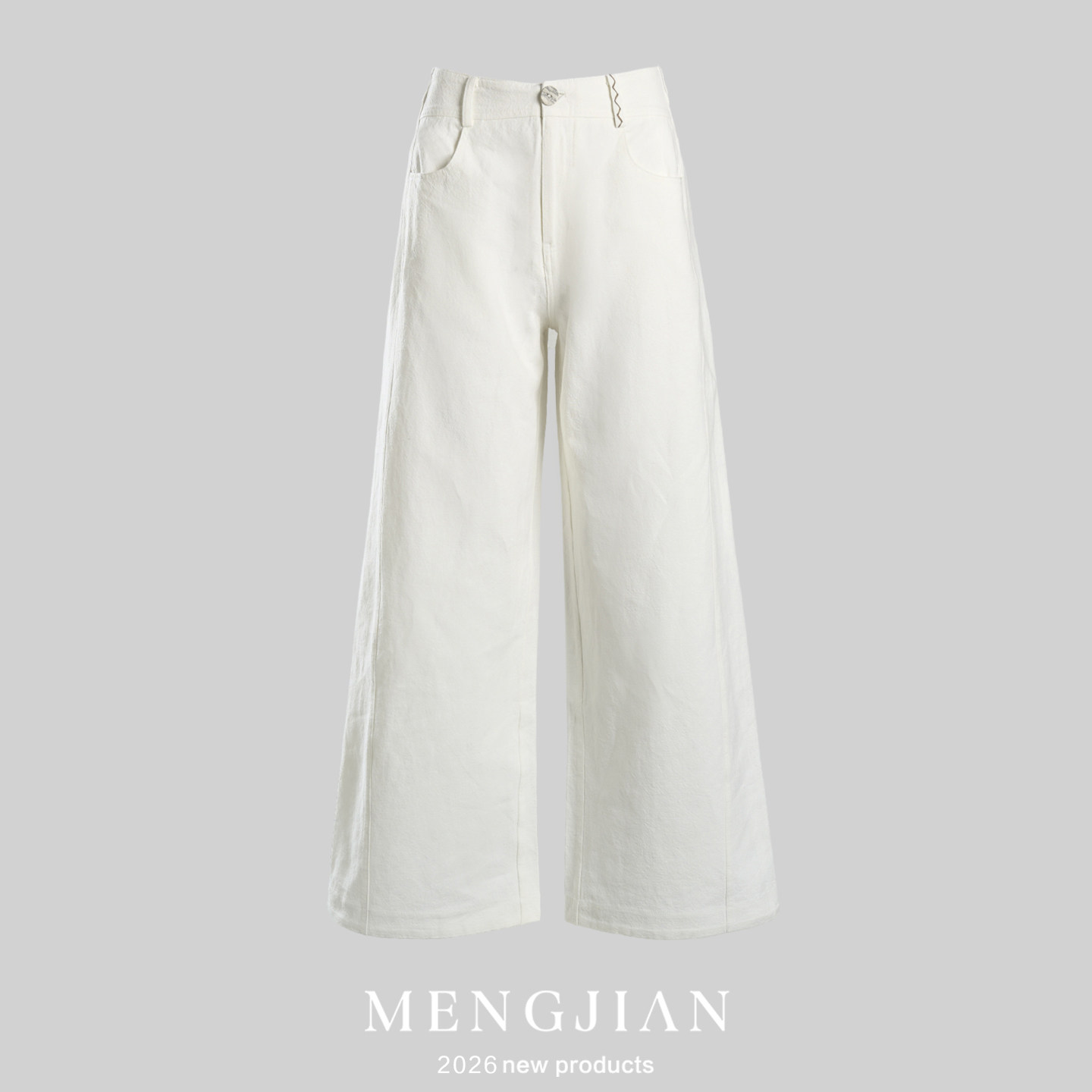麻本色肌理感宽松长裤 新款 子 女2026春季 MENGJIAN棉麻休闲阔腿长裤