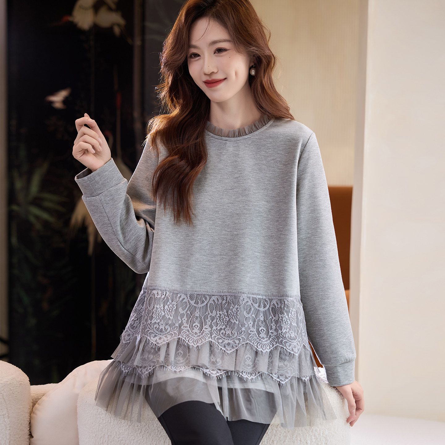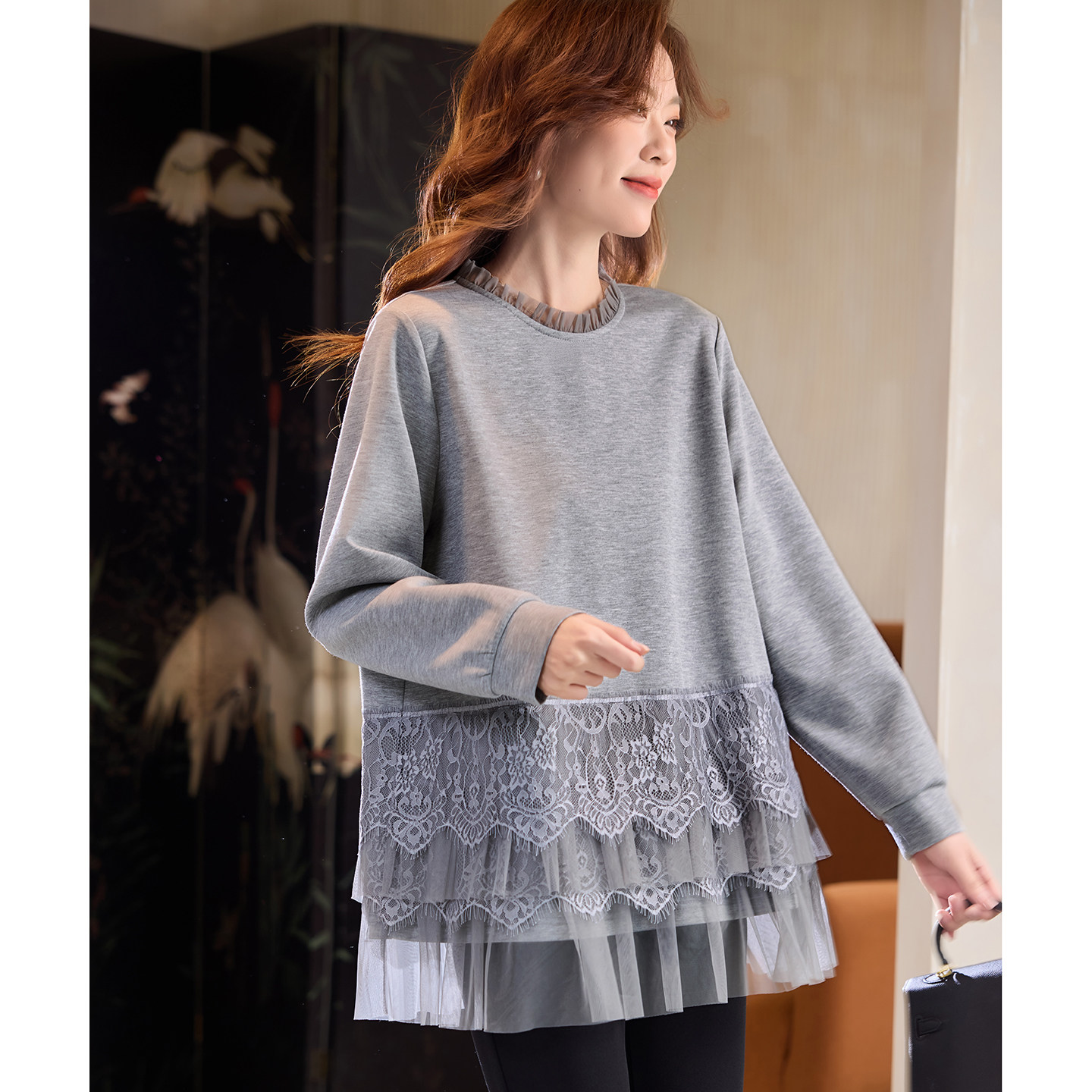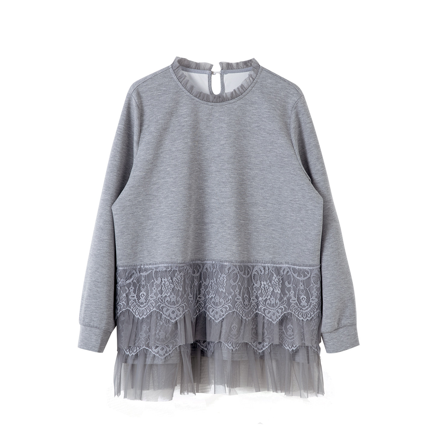 宝诗黎木耳边领蕾丝拼接卫衣2026春季 棉质洋气宽松百搭休闲上衣女
