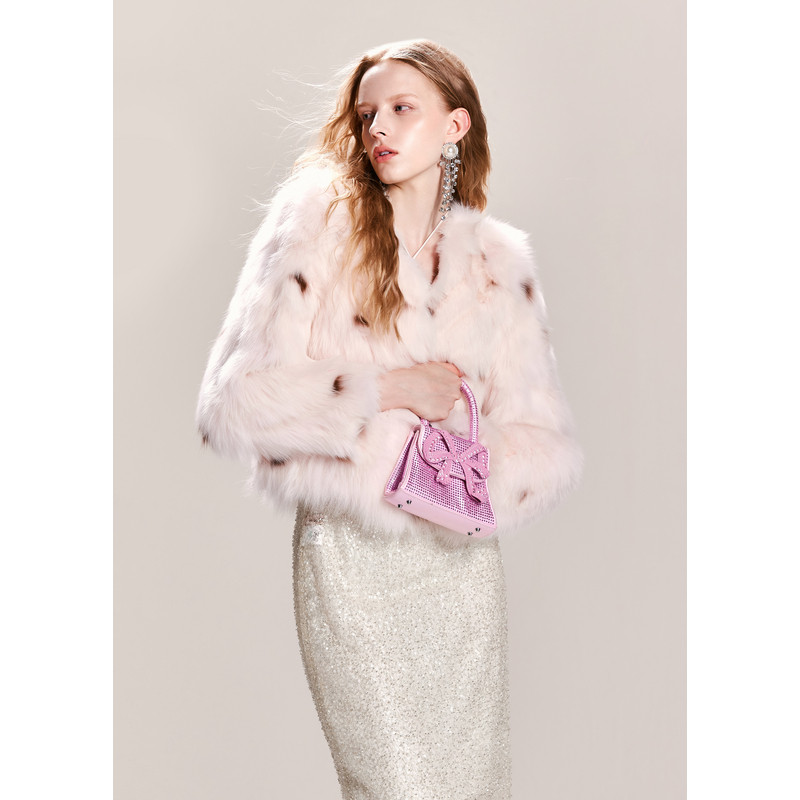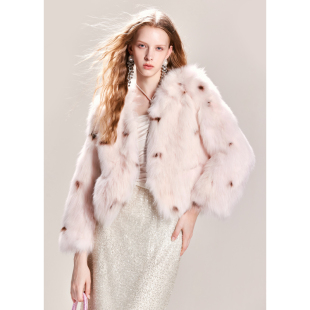 可可尼cocoon狐狸毛皮草2024新款 粉色大衣 皮毛一体短款