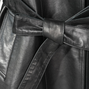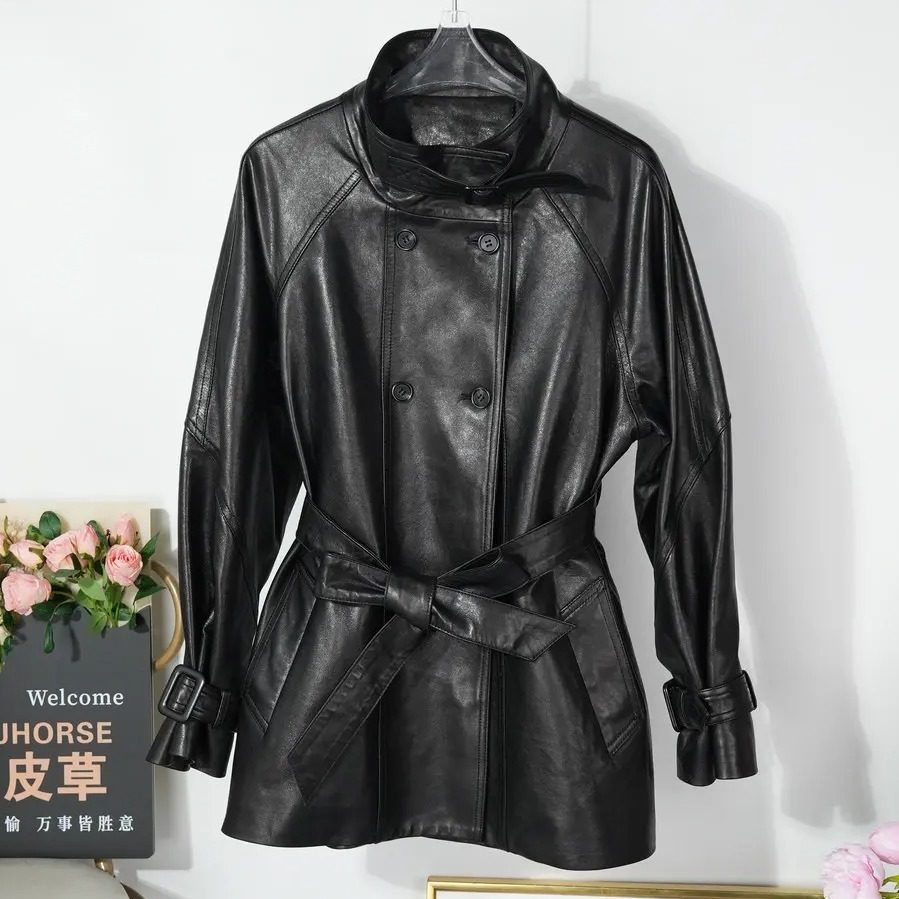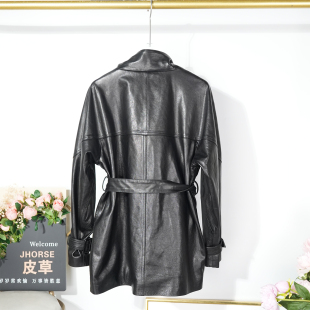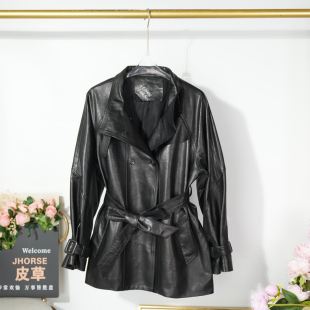 绵羊皮酷飒真皮中长款 风衣外套2026春秋双排扣立领收腰通勤皮衣女