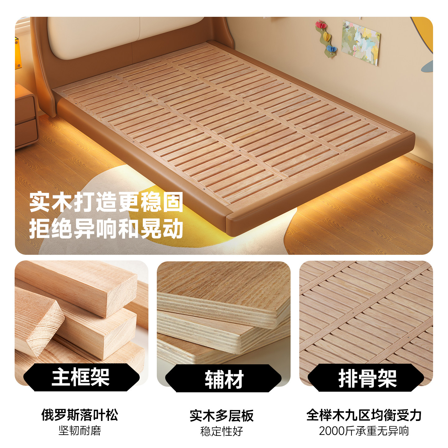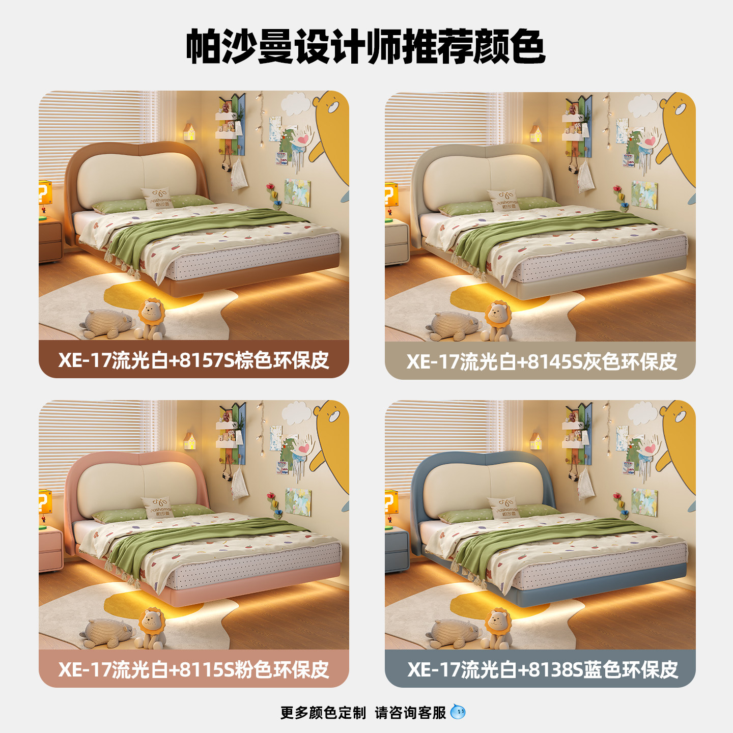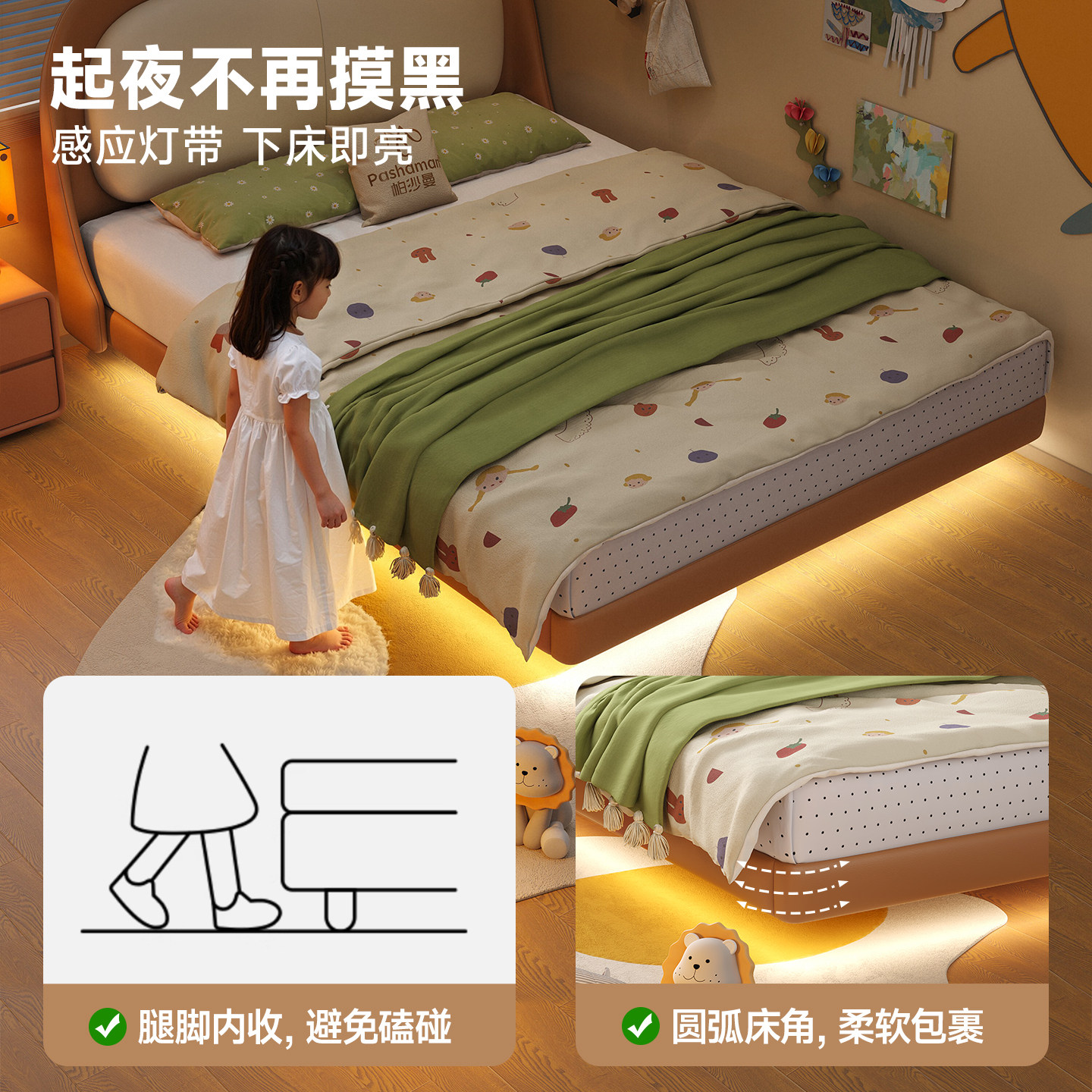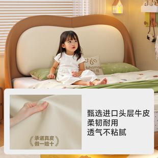 帕沙曼 女孩儿家用真皮悬浮床护童儿童房家具 儿童床男孩2025新款
