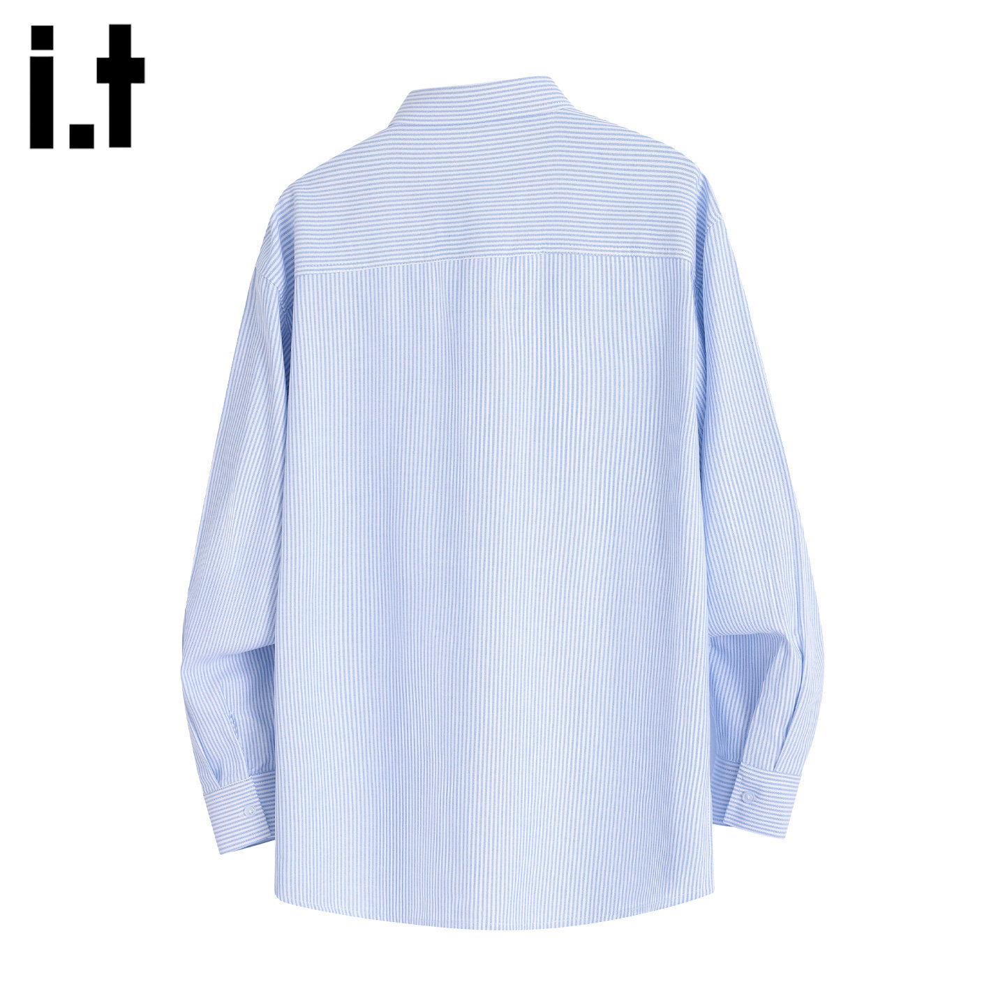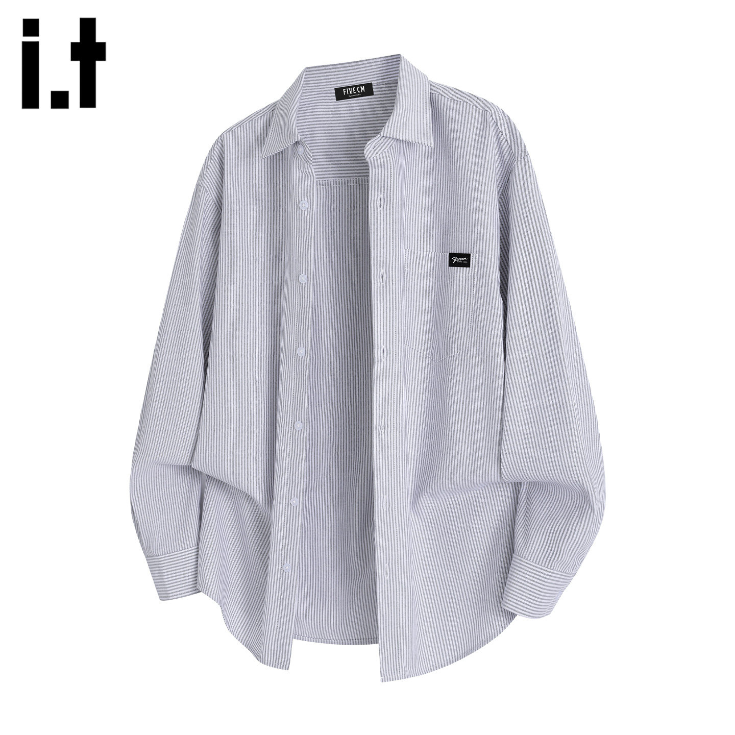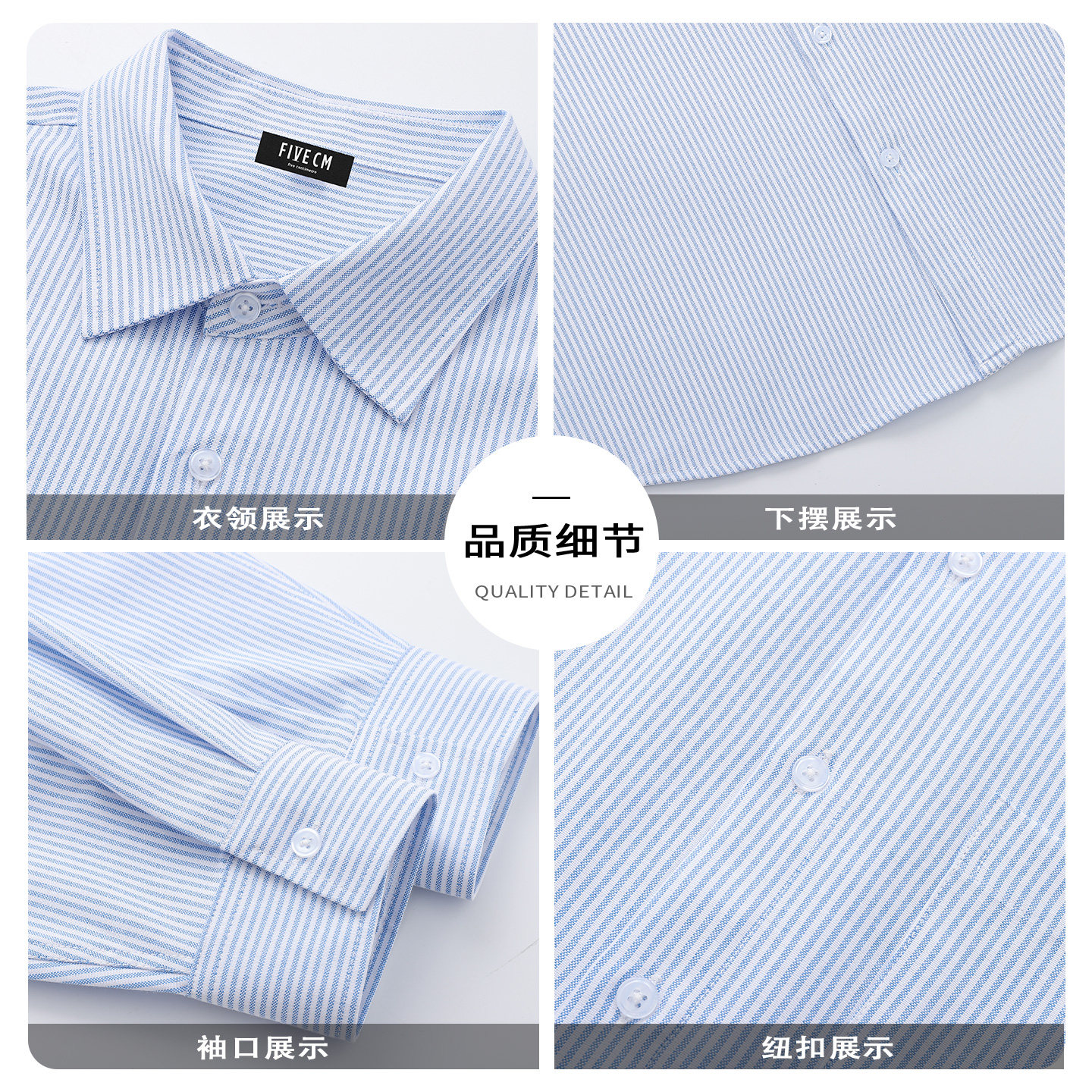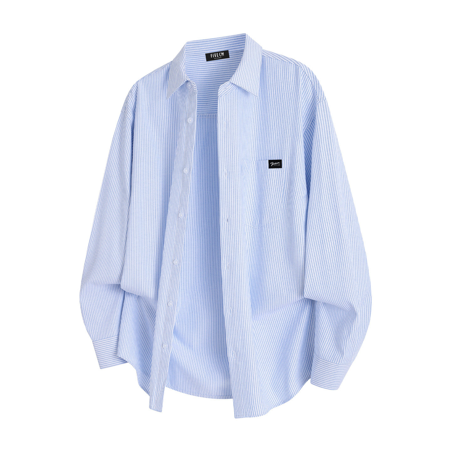 男士 衬衫 FIVECM蓝白条纹翻领单排扣长袖 2025春秋宽松上衣 5cm