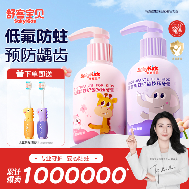 冷酸灵贝乐乐儿童按压式 牙膏含氟防蛀草莓奶昔风味小马宝莉款