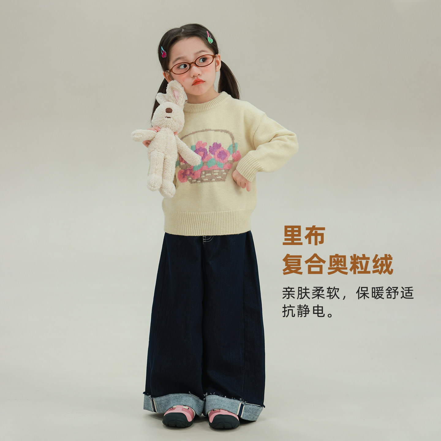 牛仔裤 巴拉巴拉童装 春秋装 子儿童2025新款 直筒拜年服潮 女童加绒裤