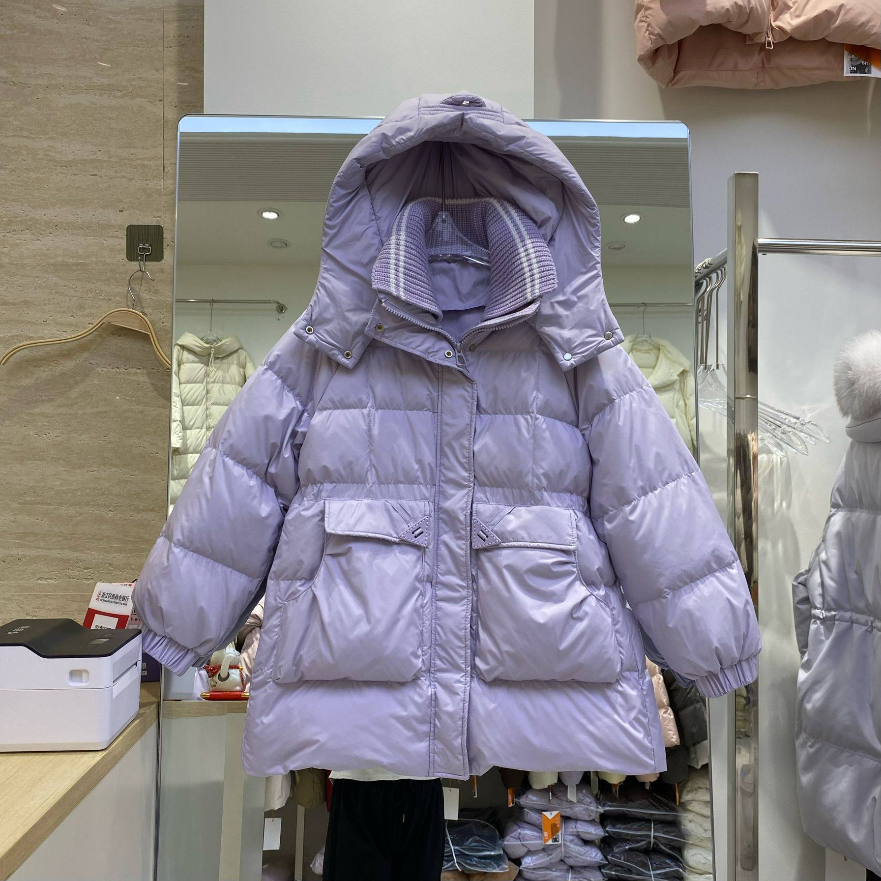 时尚 中长款 韩版 新款 洋气设计感宽松加厚连帽 羽绒服女2025冬季