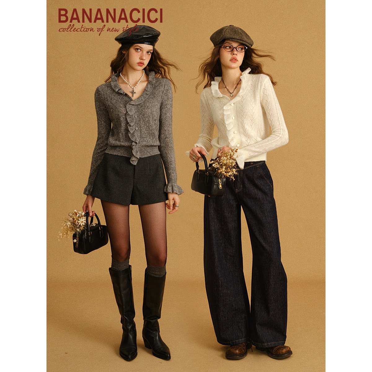 荷叶边V领针织衫 新款 连衣裙 CICI2025年冬季 BANANA