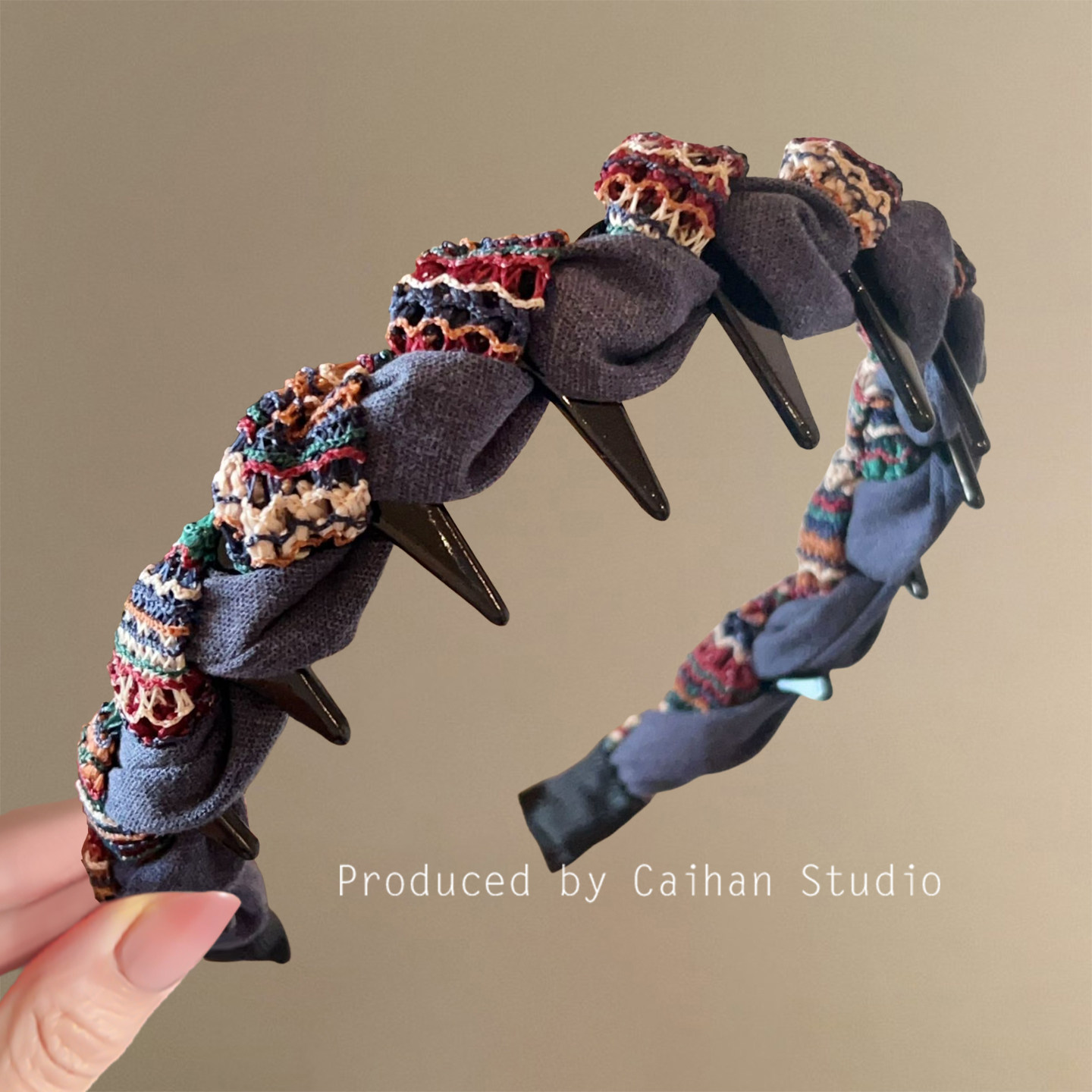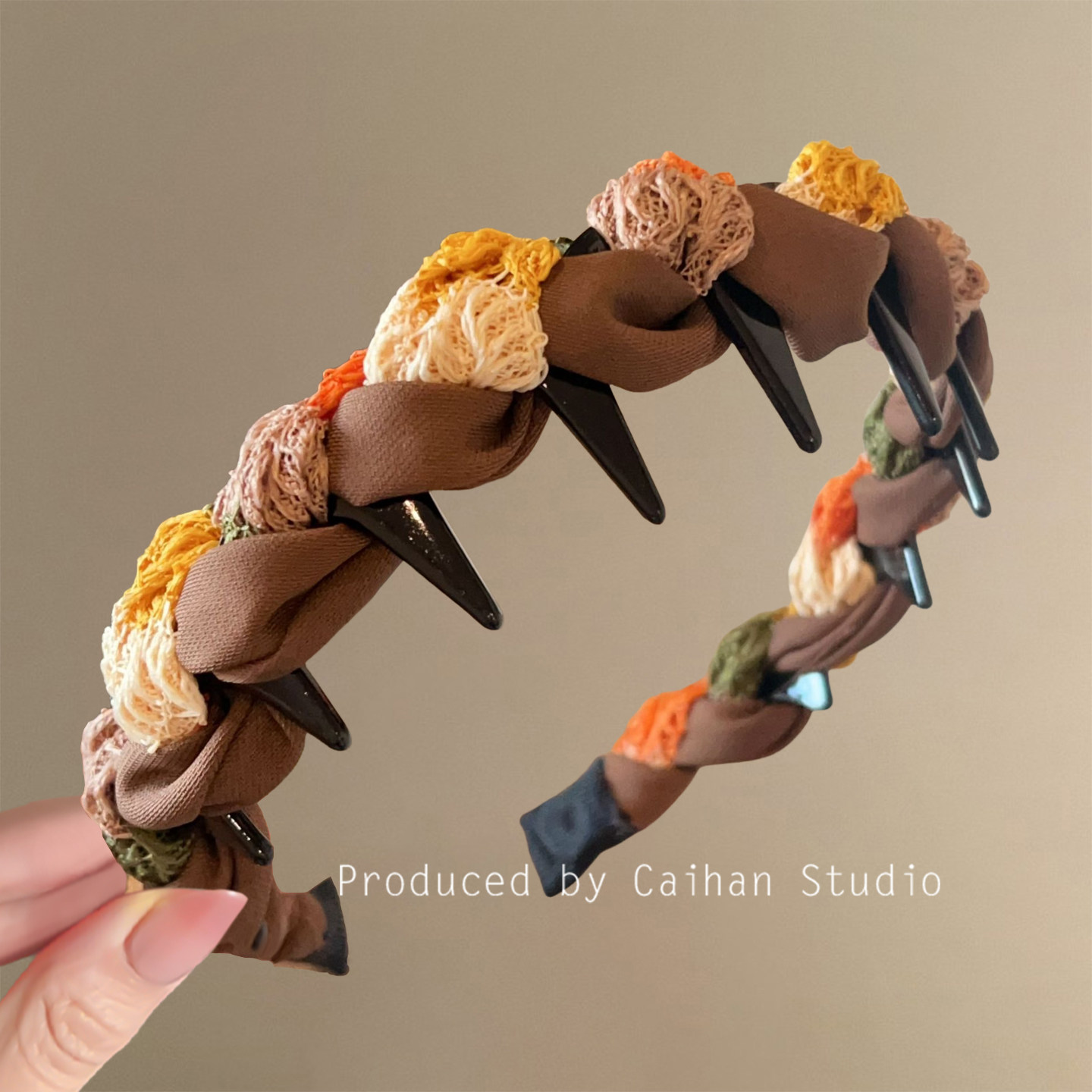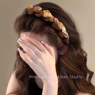 橘生淮南 气质拼色绕线带齿发箍高颅顶甜美百搭洗脸头箍旅行发卡