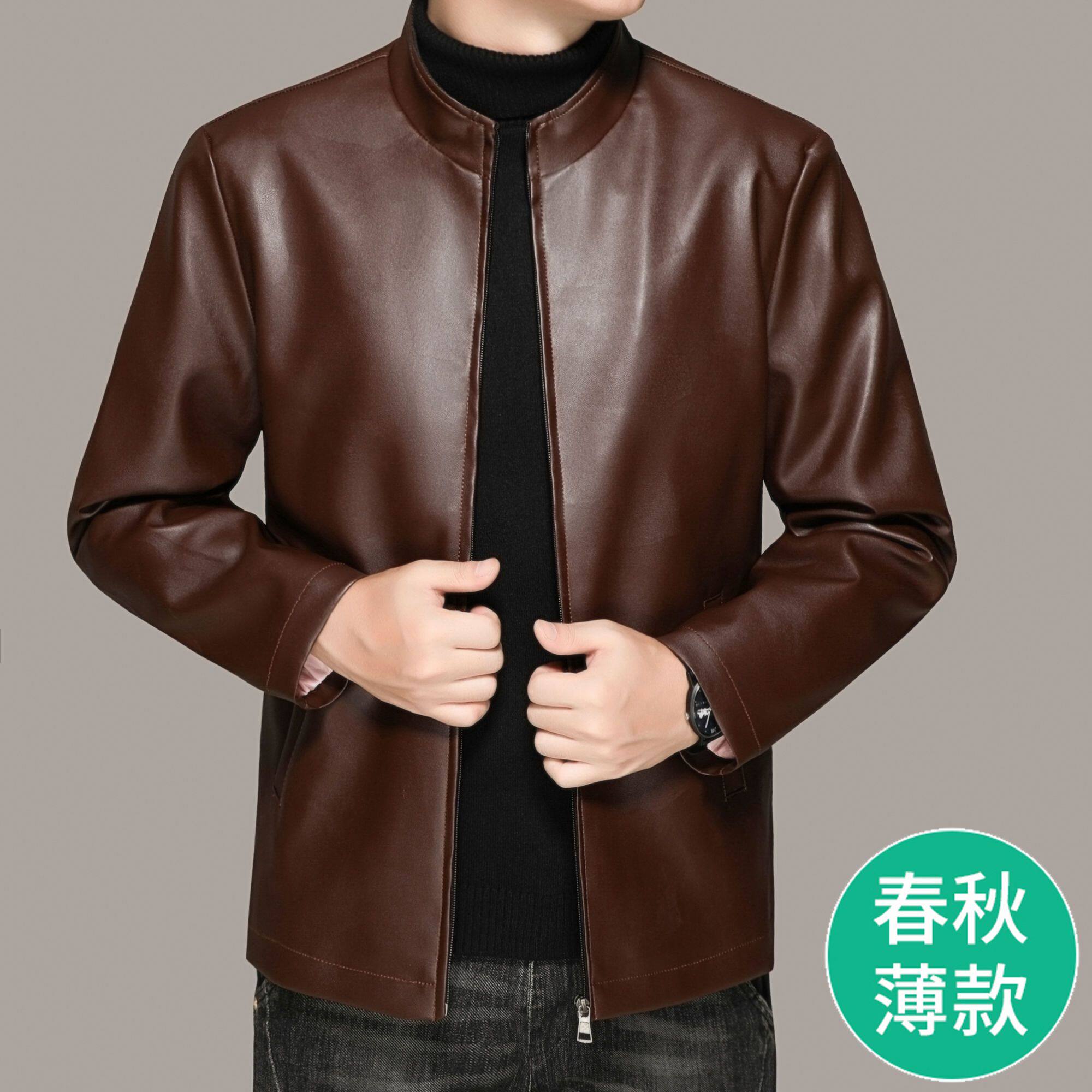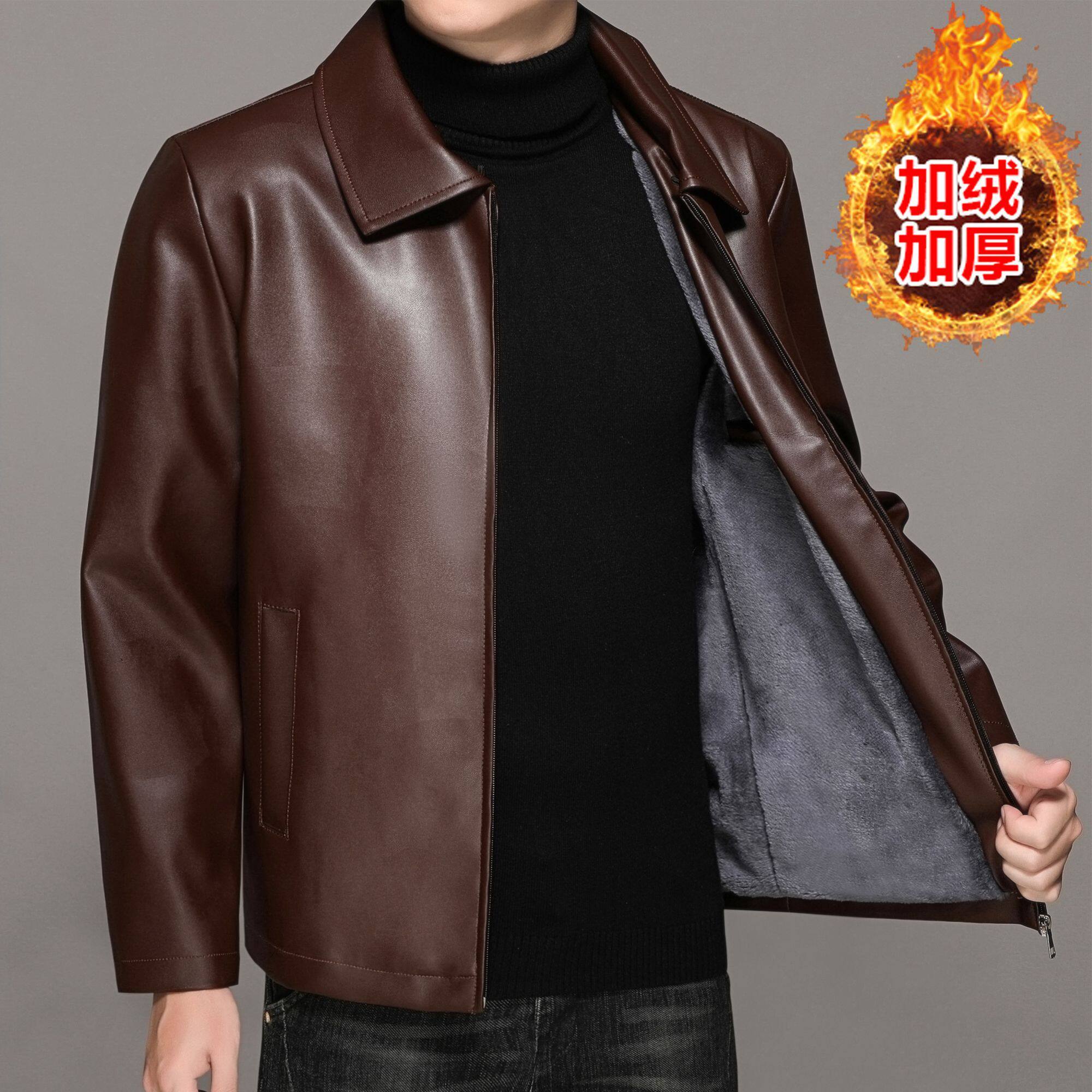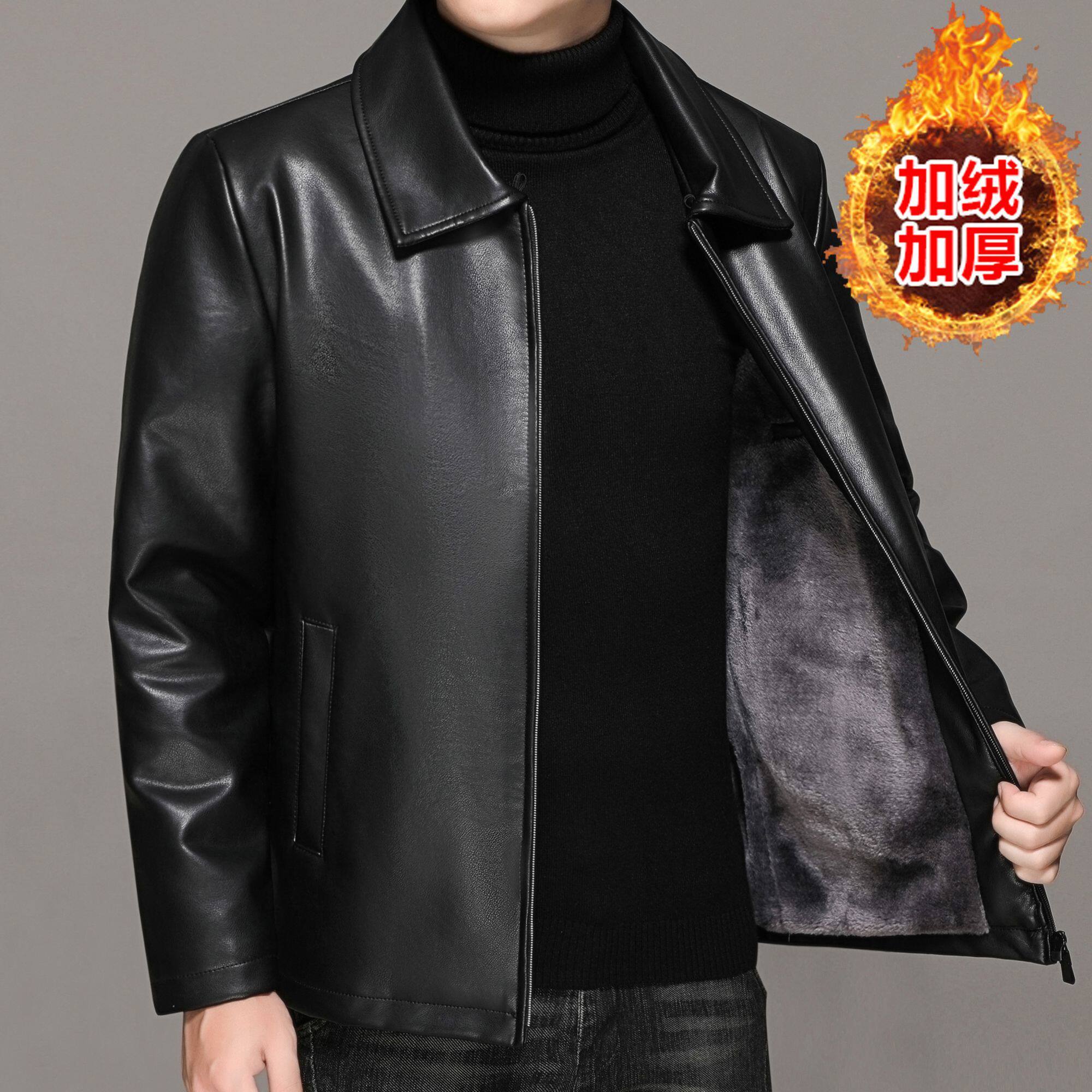 爸爸装 皮衣男外套中老年外套海宁中年皮衣冬季 加绒加厚皮夹克男装