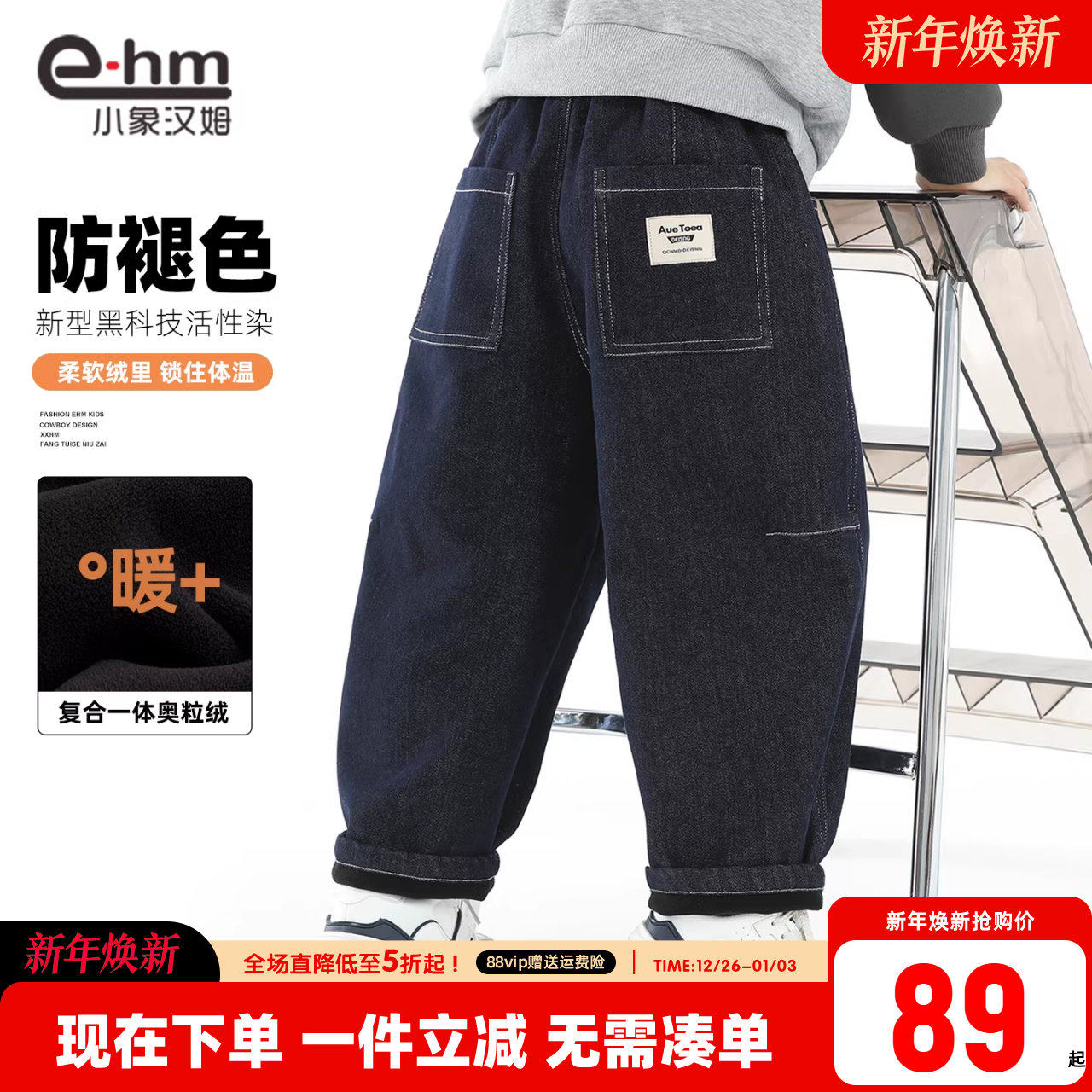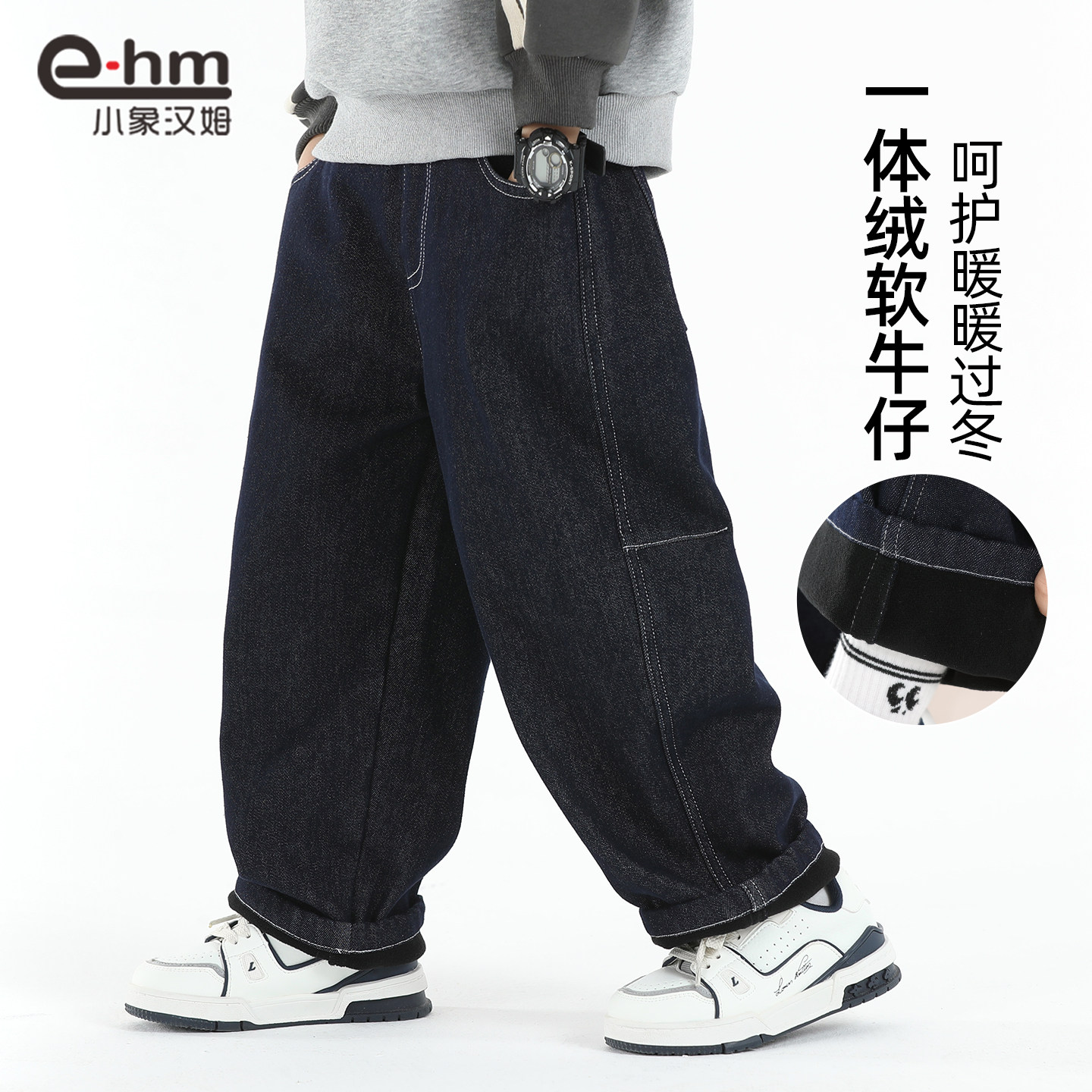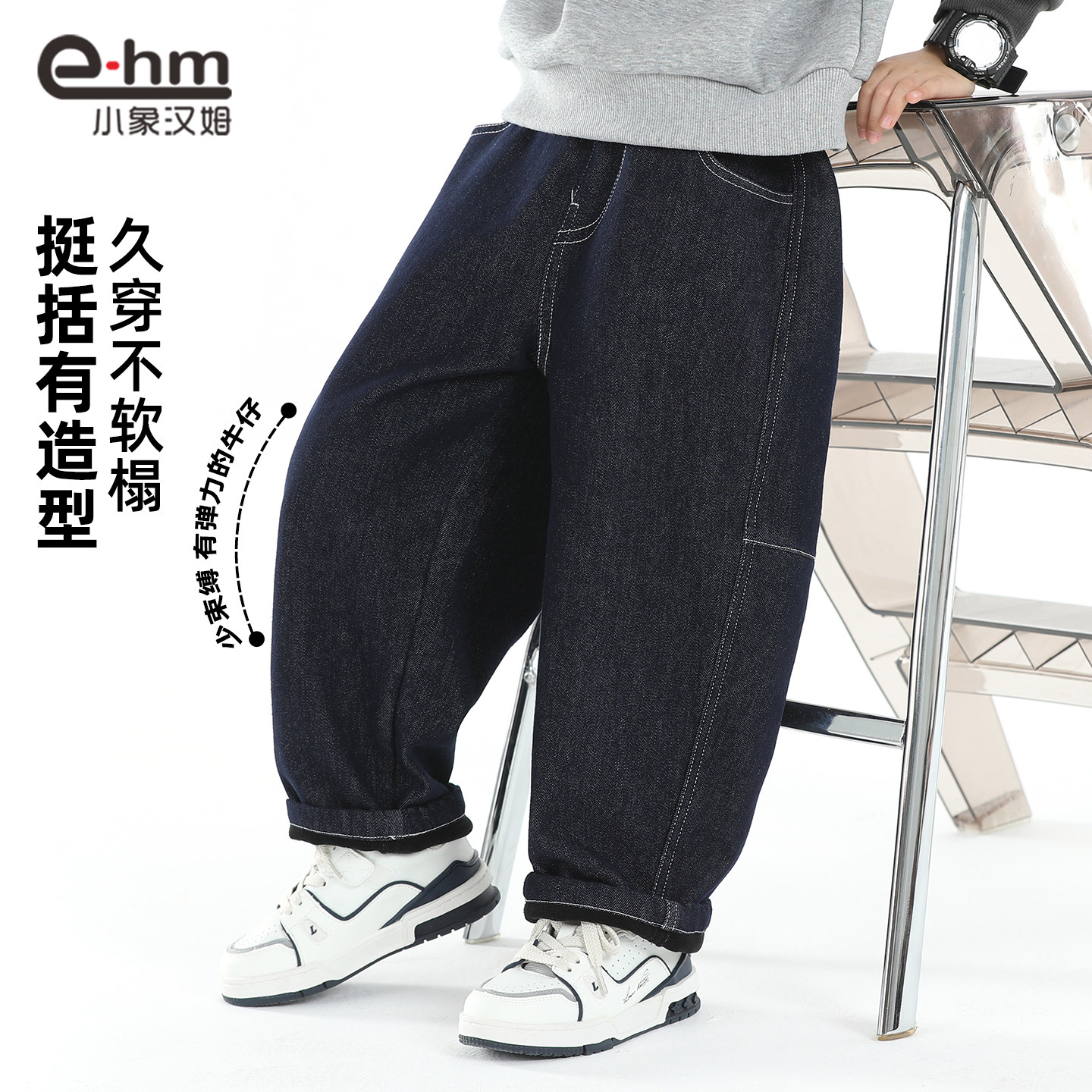 男童加绒牛仔裤 男孩长裤 儿童防褪色裤 新款 子2025冬装 小象汉姆童装