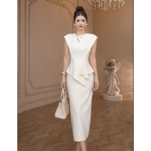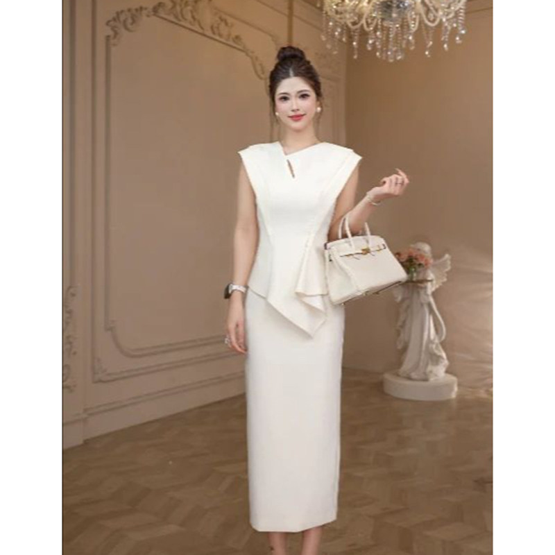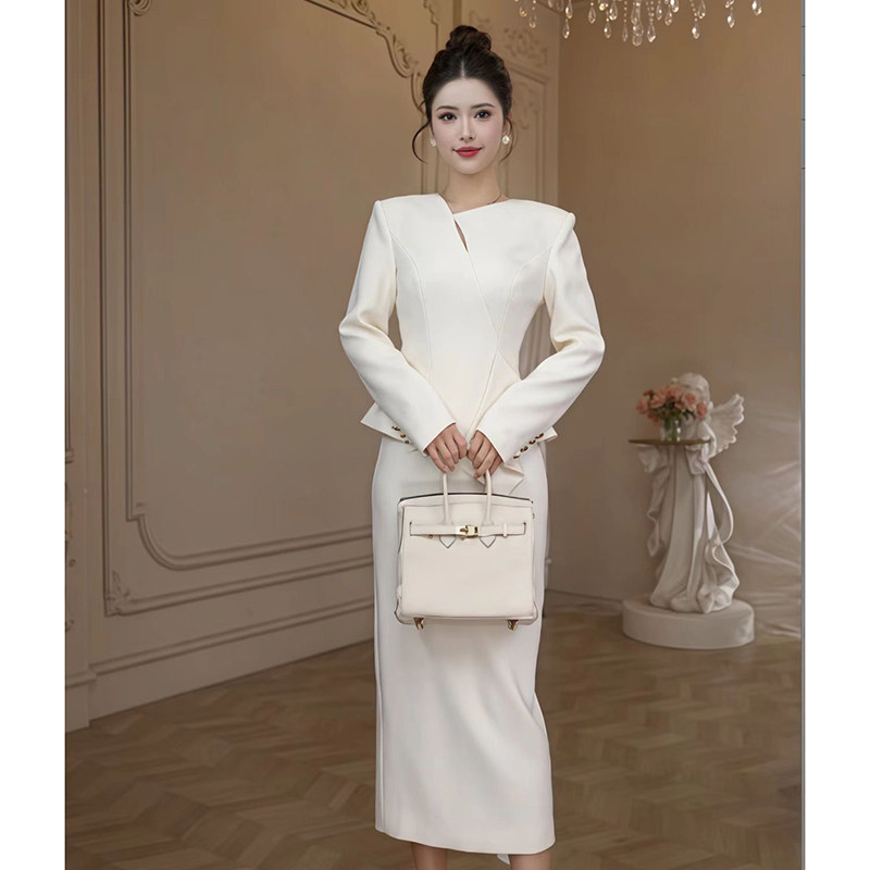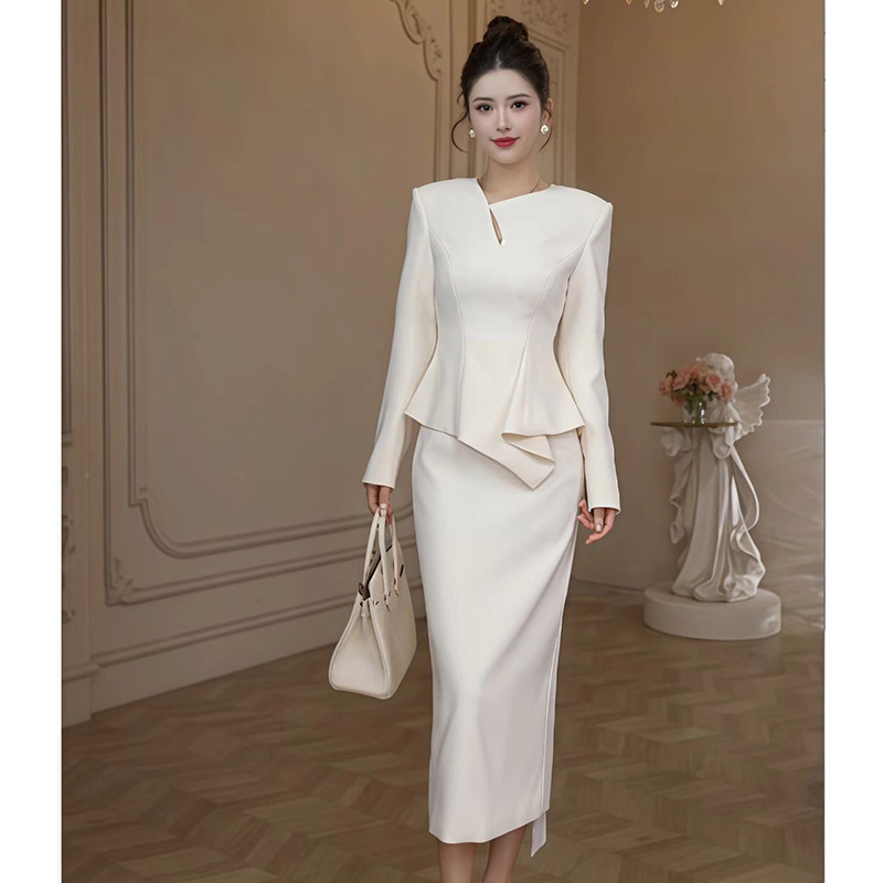 通勤气质女神范职业长袖 显瘦包臀裙子 连衣裙女小众设计不规则修身