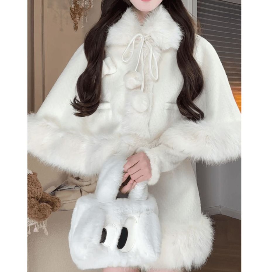 千金气质套装 雪国公主 法式 半身短裙套装 秋冬氛围感斗篷毛呢外套