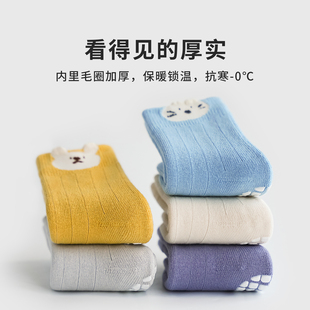 婴儿地板袜冬季 加厚保暖儿童防滑纯棉袜子宝宝室内隔凉学步中筒袜