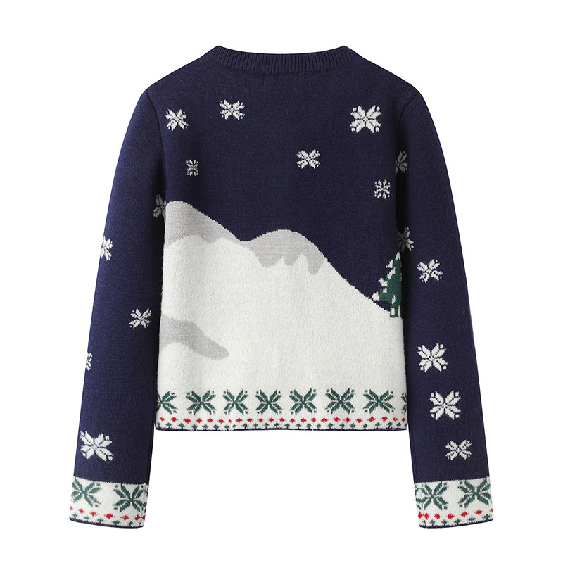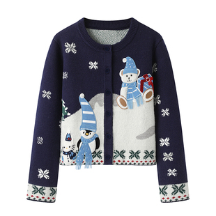 费圣诞复古雪景娃娃提花刺绣短款 新品 毛衣外套女 2025冬季 针织开衫