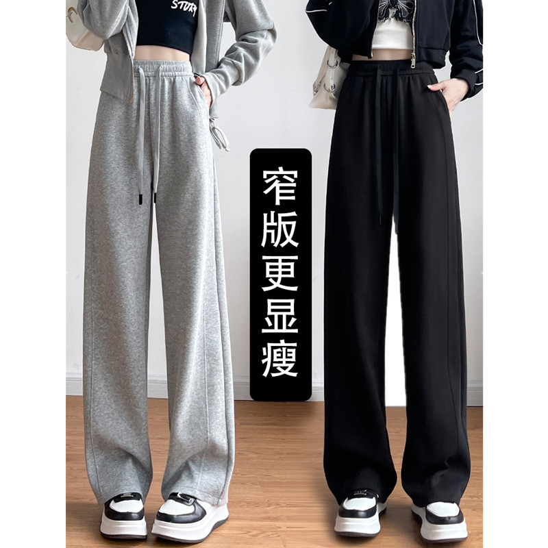 女宽松休闲直筒长裤 秋冬高腰胖mm大码 显瘦加绒加厚香蕉运动阔腿裤
