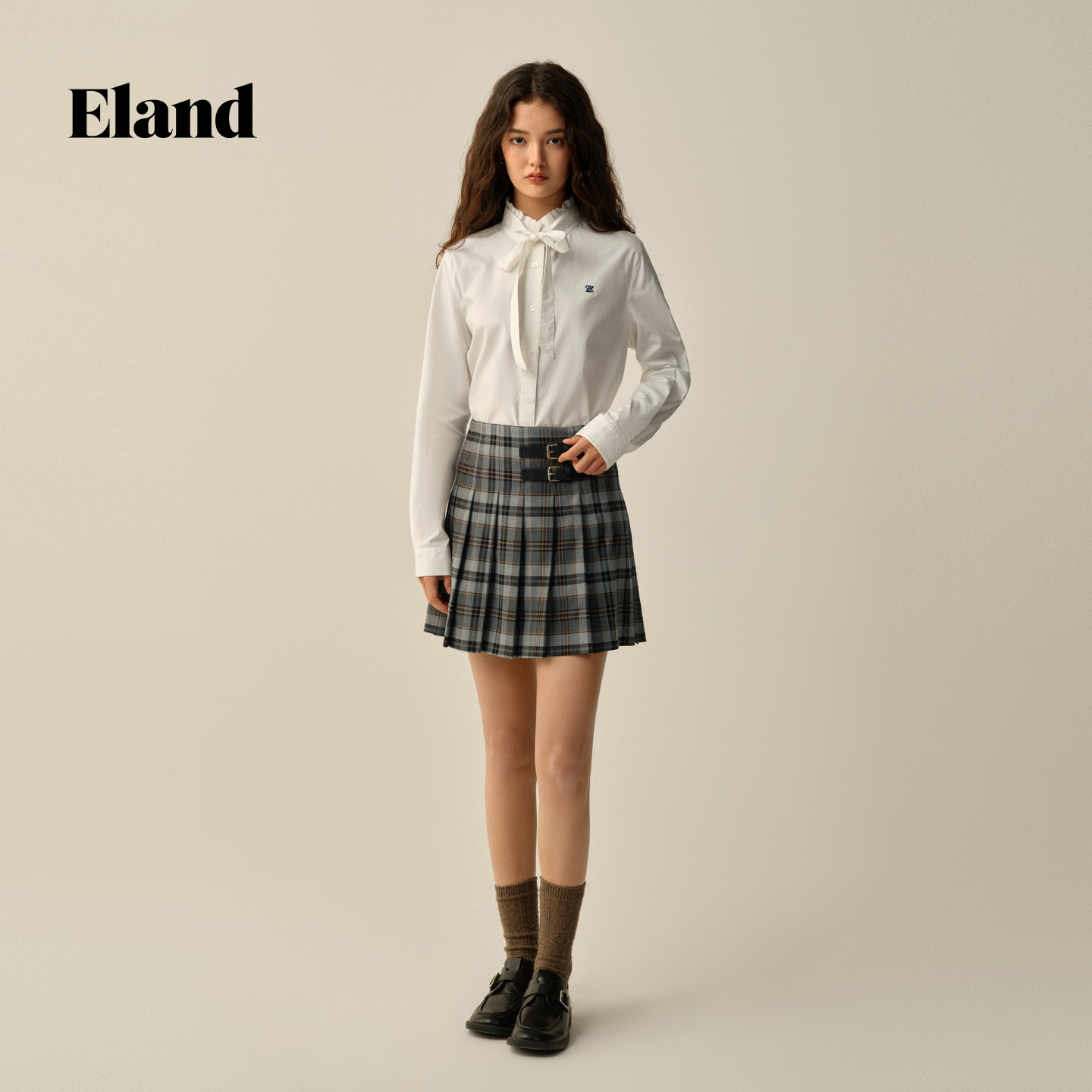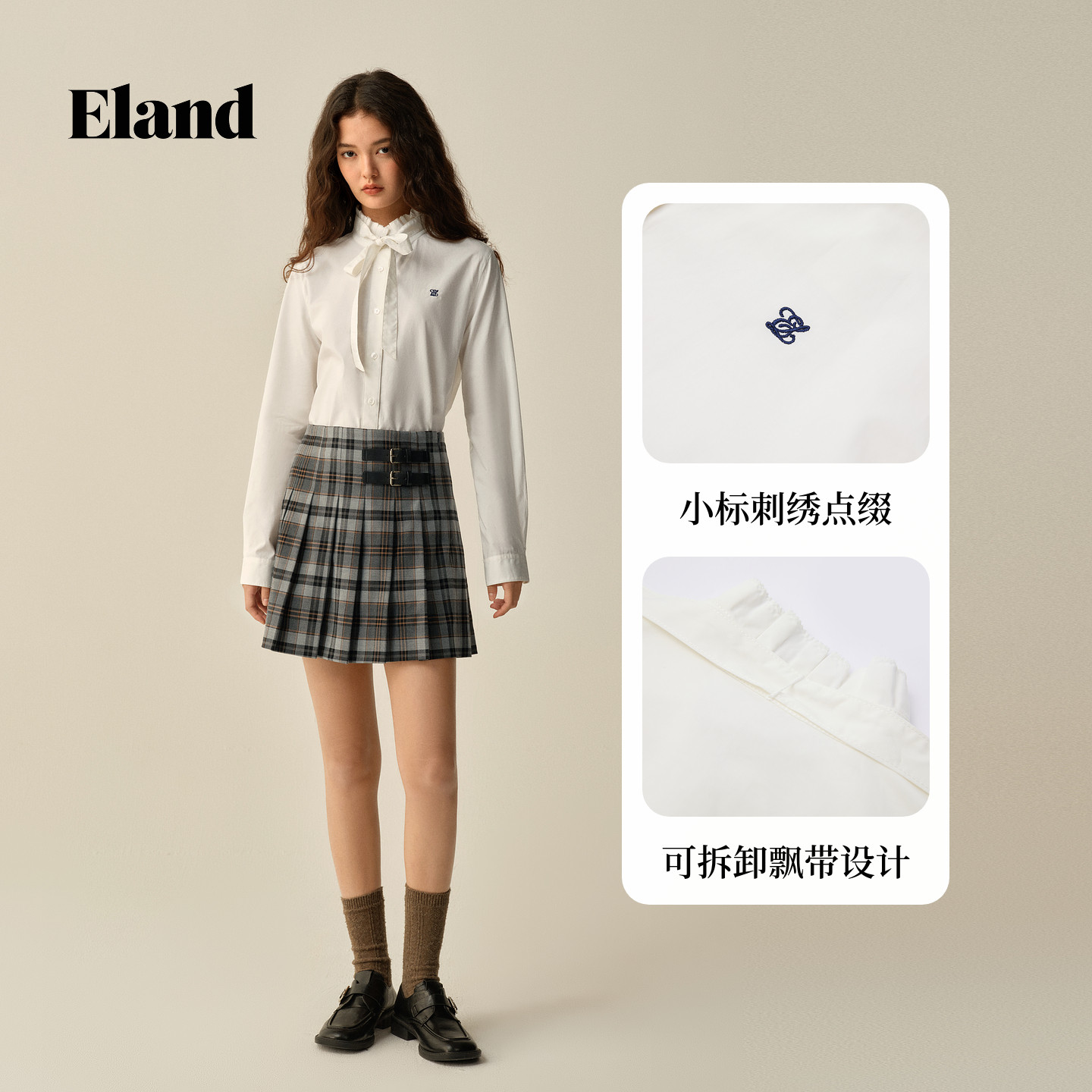 女时尚 Eland衣恋衬衫 通勤飘带领纯色上衣2025 莫代尔
