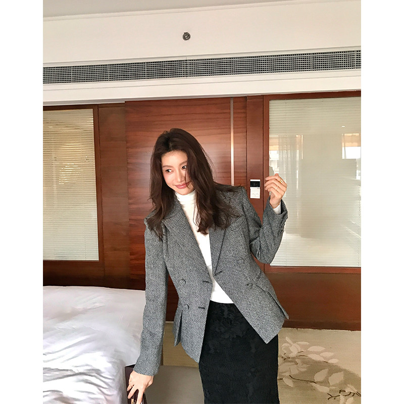 西装 微胖mm秋冬宽松正肩长短款 毛呢大衣外套 百分百女装 DM100大码