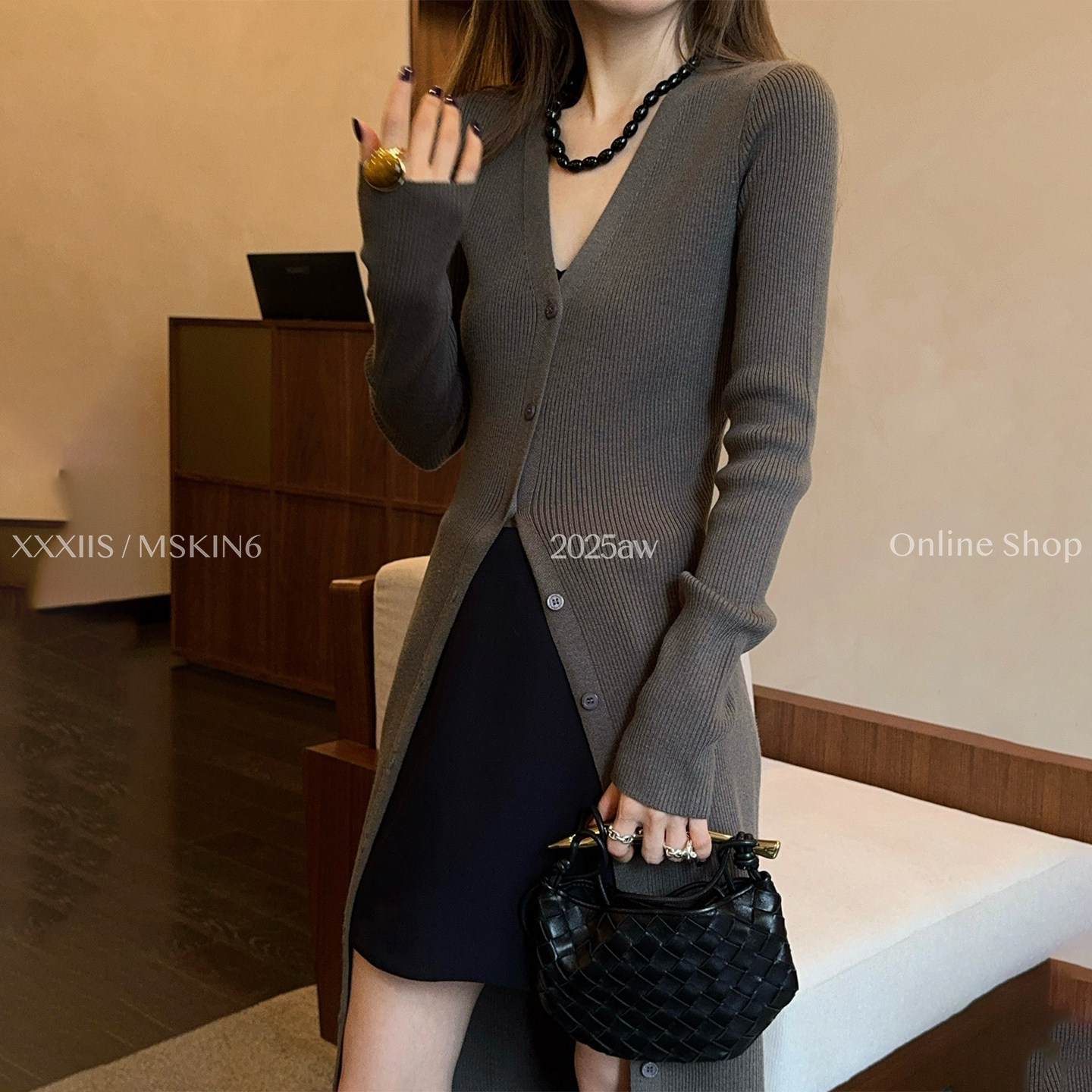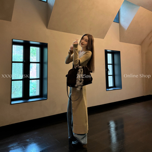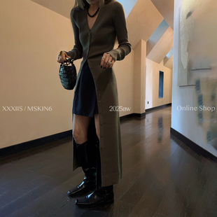 MSKIN6秋冬V领针织开衫 高弹内搭显脸小 连衣裙女显瘦气质修身