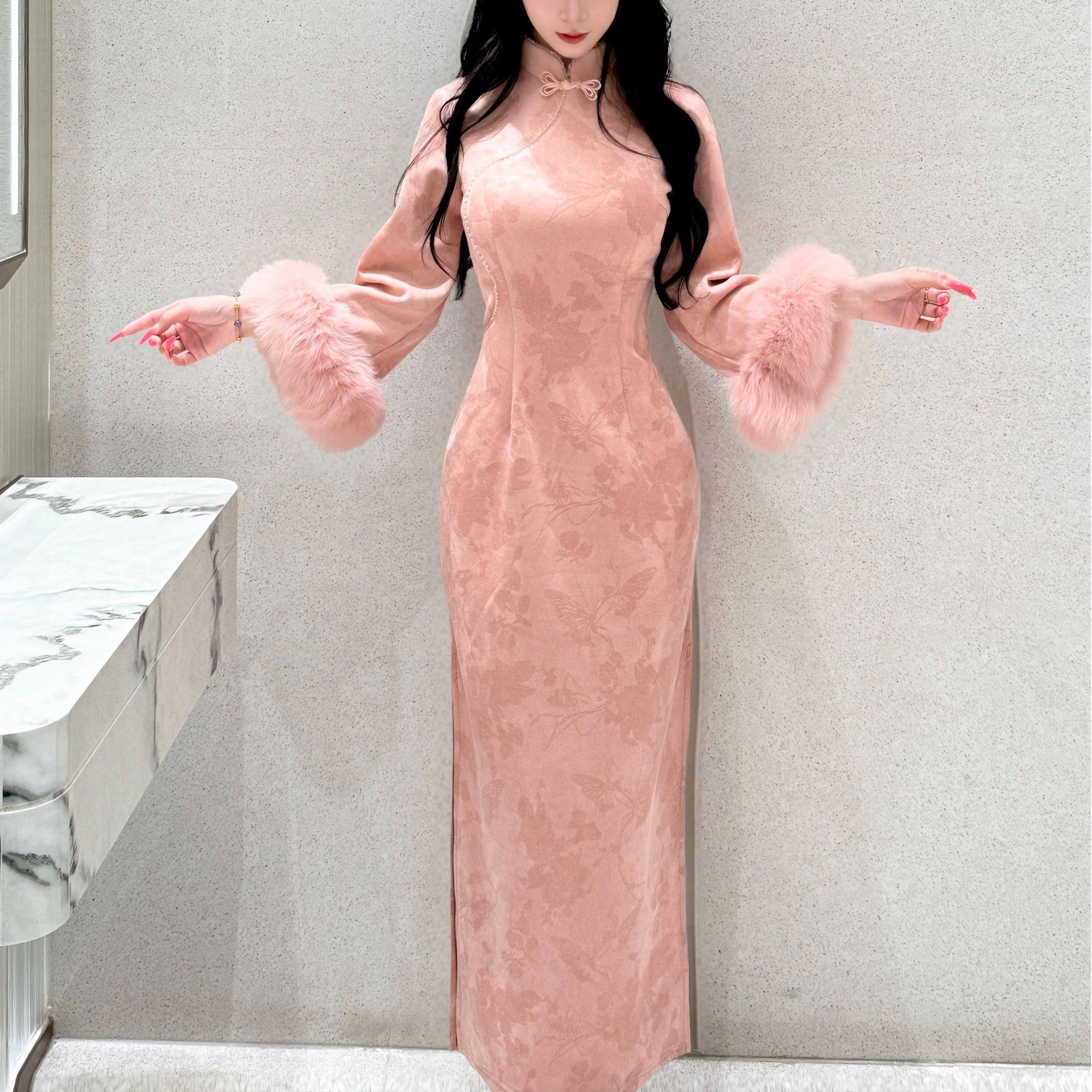 厚款 旗袍连衣裙 茶树子 国风秋冬厚款 画报夫人原创自制新中式