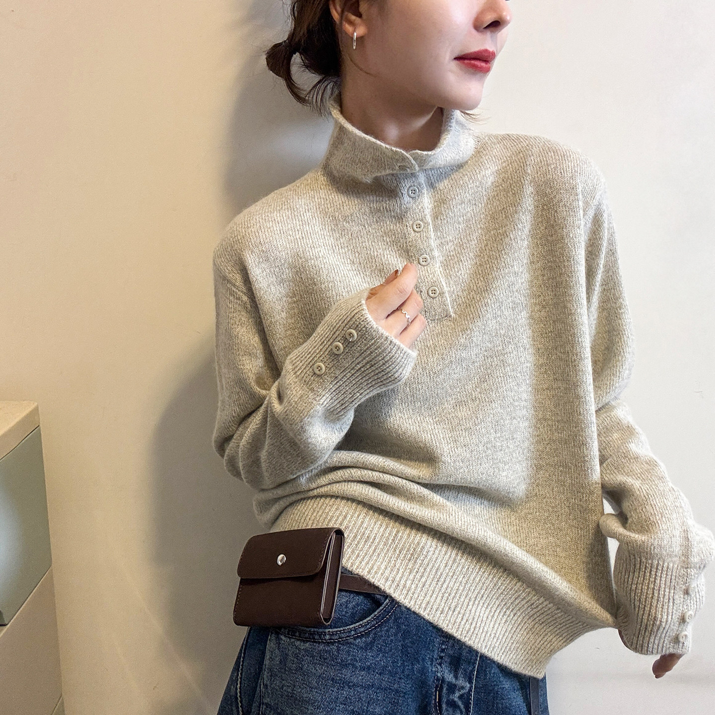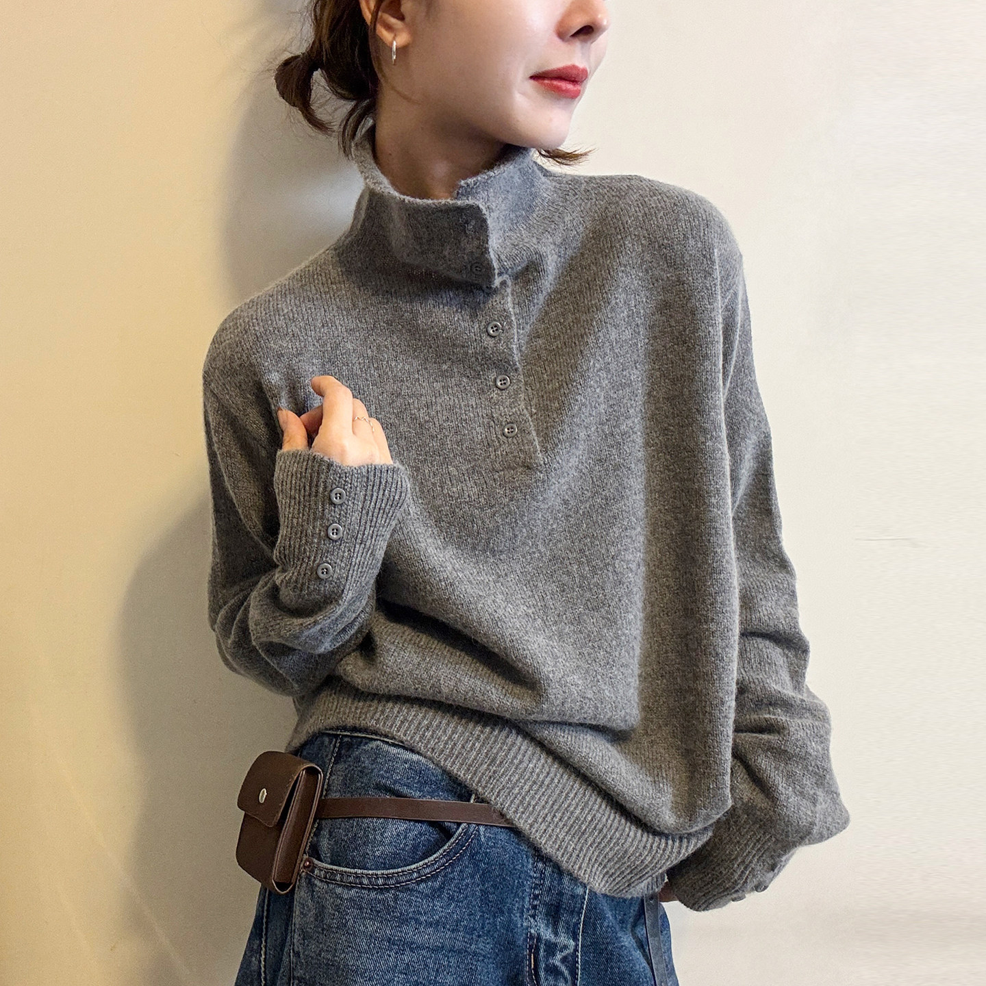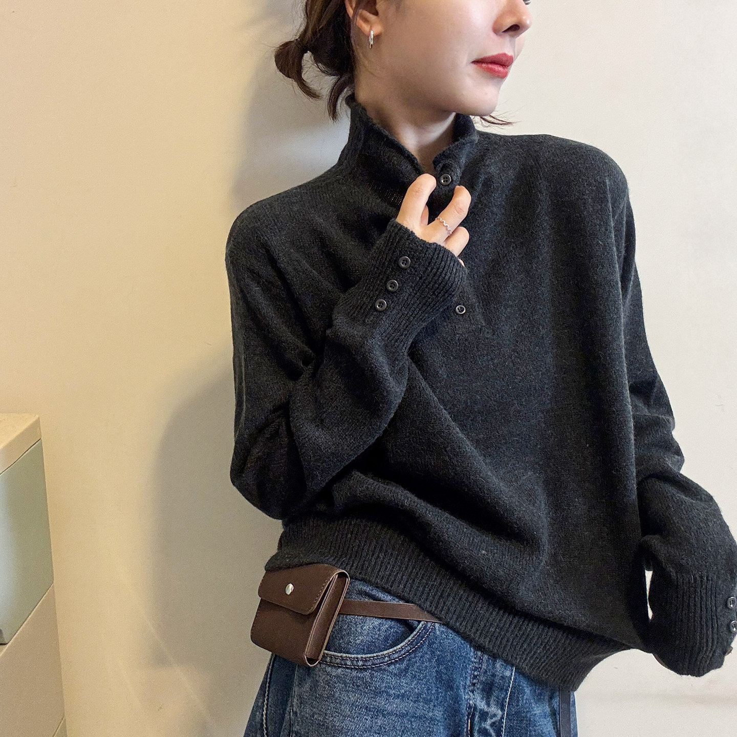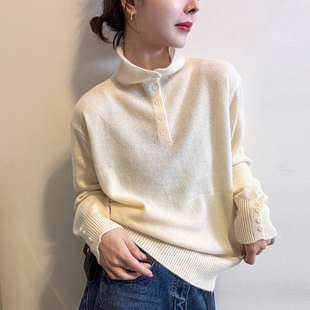 针织打底衫 品牌高级感羊毛衫 女半高领宽松毛衣秋冬加厚羊绒长袖