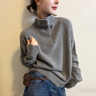 秋冬堆堆高领针织打底宽松毛衣羊毛衫 100%纯羊绒衫 毛衫 女 断码